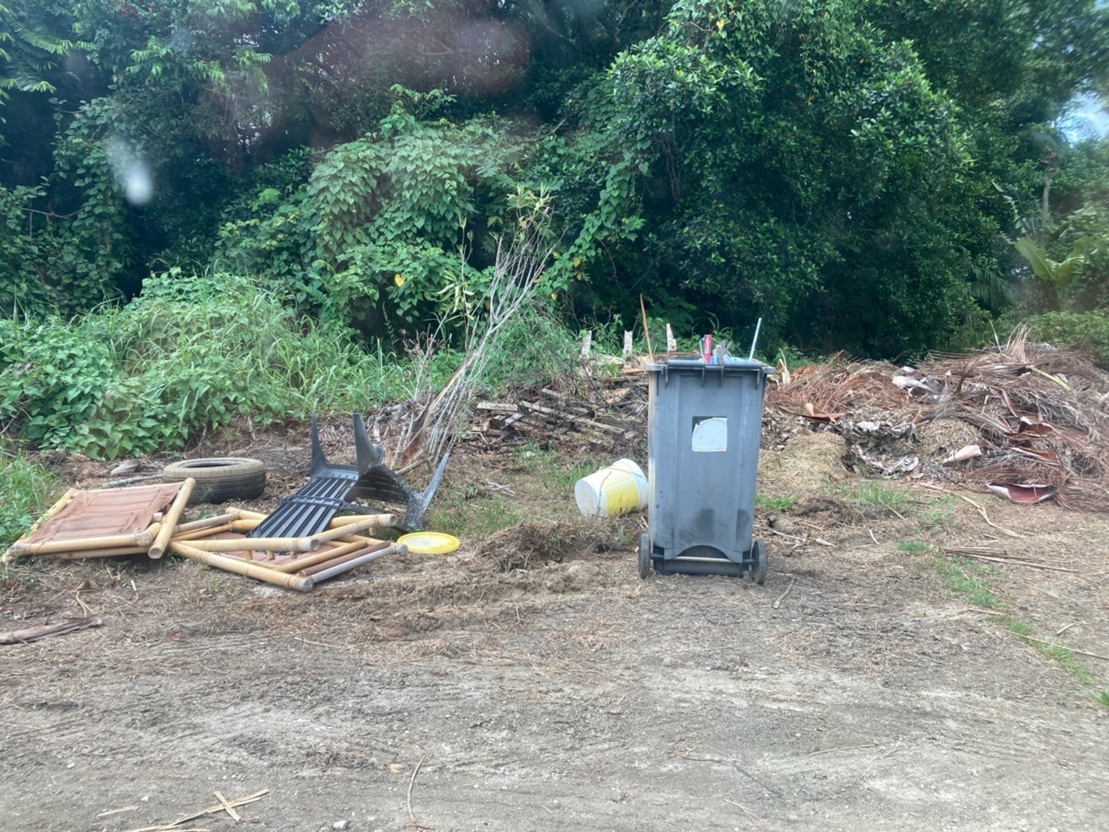 Un dépôt de déchets de petite ampleur a été signalé à la Chaumière, constitué d'une poubelle de déchets ménagers, de morceaux de bois et de déchets verts sur une zone accessible.