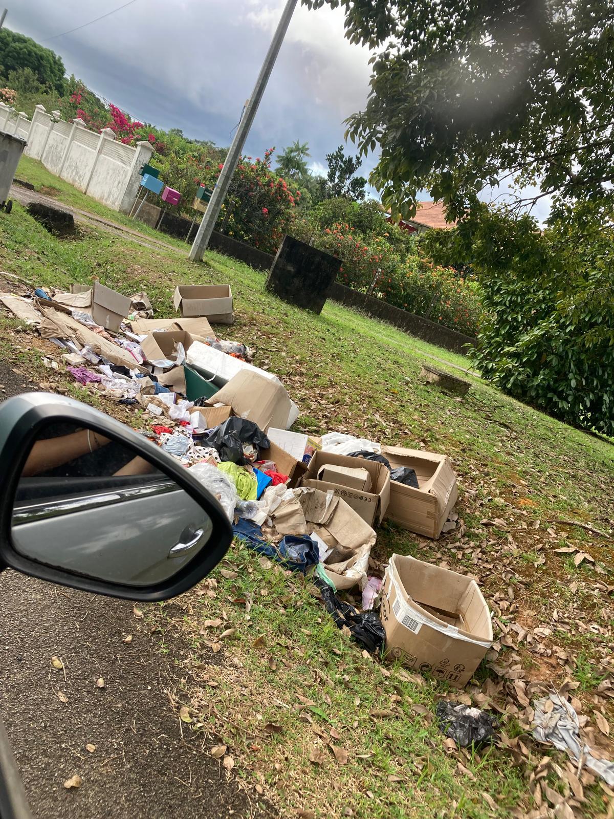 Un dépôt de déchets type ménager et cartons a été signalé sur un bord de route accessible à la Chaumière.