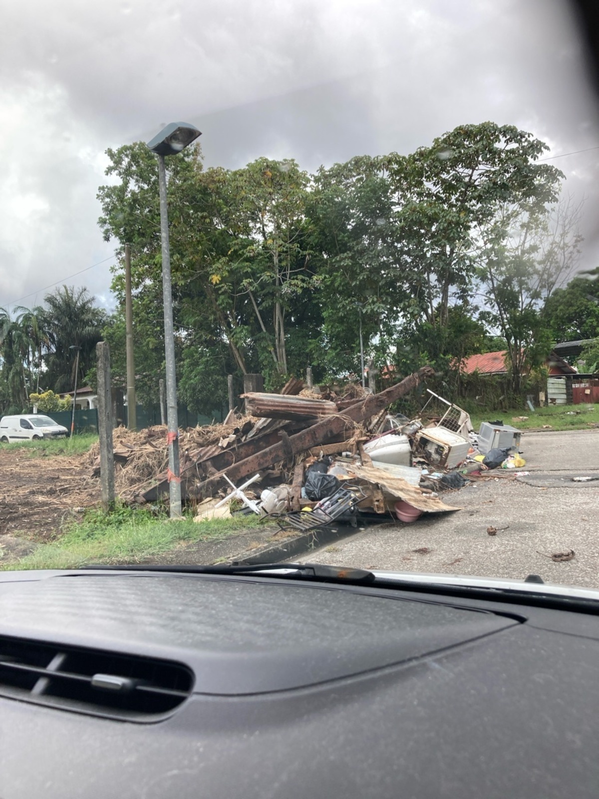 Un dépôt de déchets de moyenne ampleur constitué de de ferraille, de déchets ménagers et d'électroménager a été signalé sur un bord de route au nord de la route de la Distillerie.
