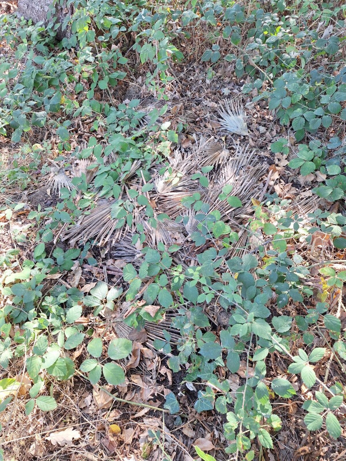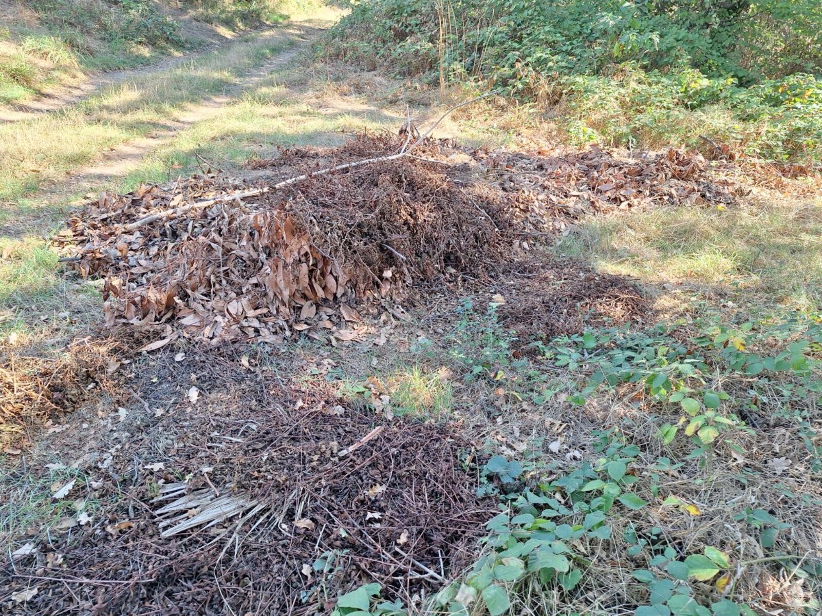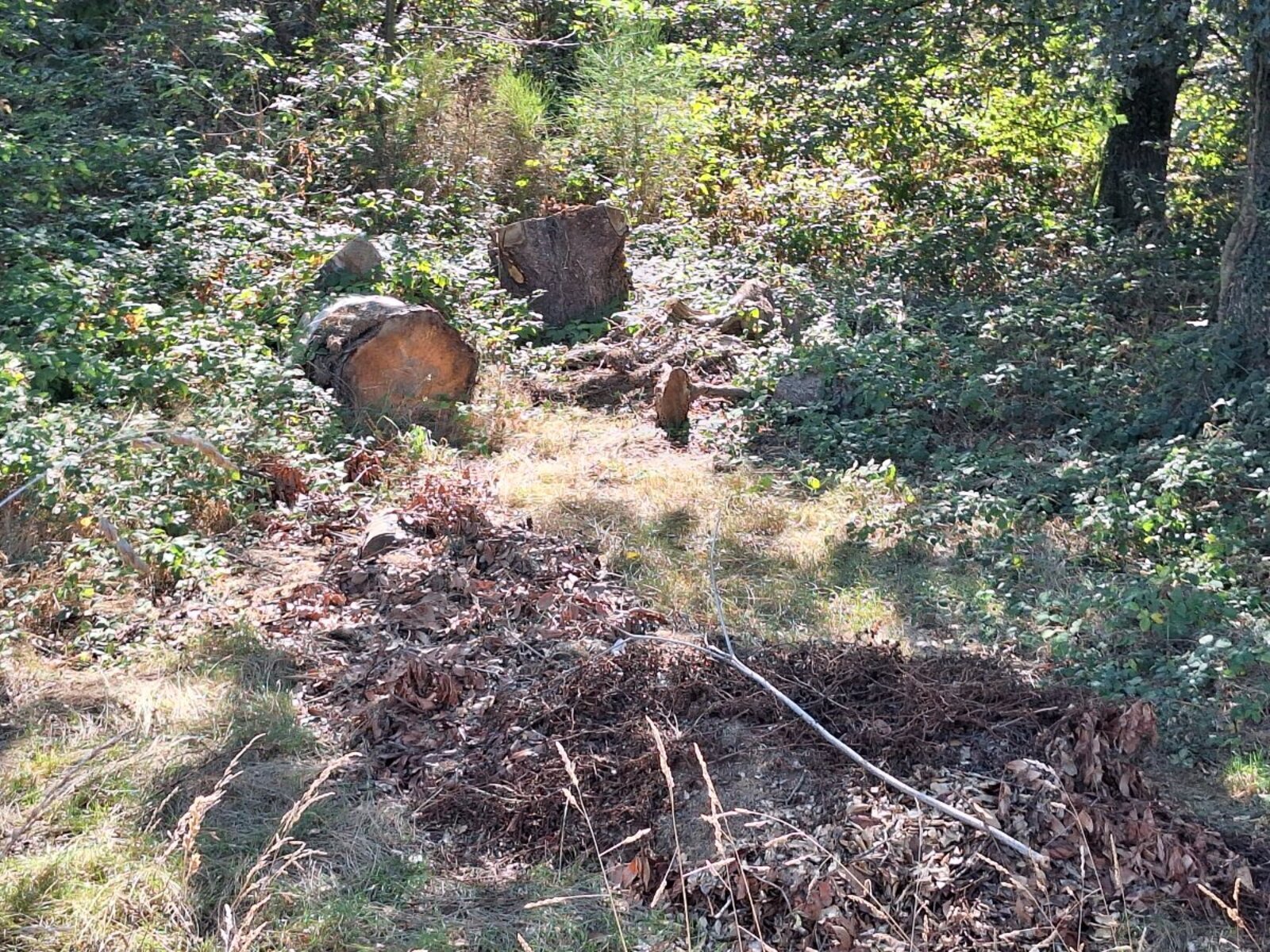 Dépôt sauvage de résidus d'abattage, taille, tonte de végétaux, et bâches plastiques, clôture grillagée, gravats.