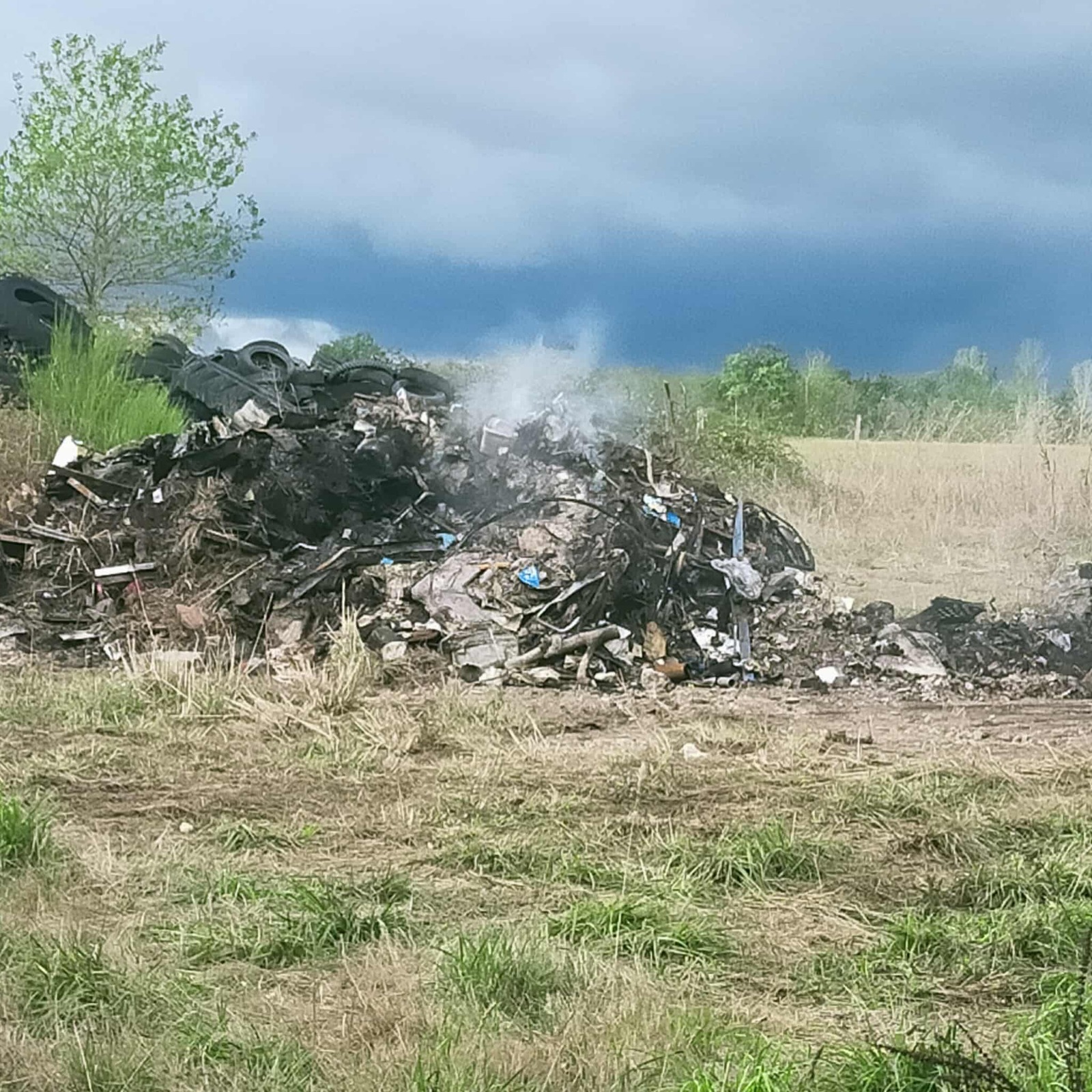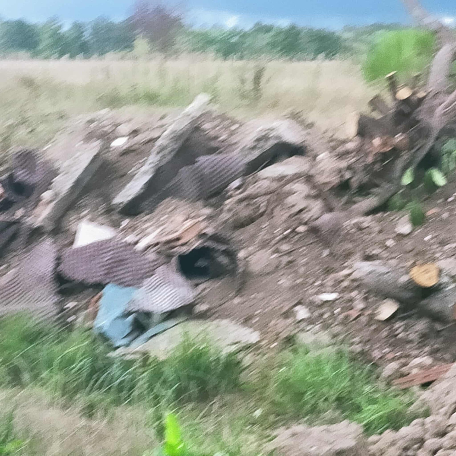 Décharge contenant des pneus et autres polluants dans un terrain privé