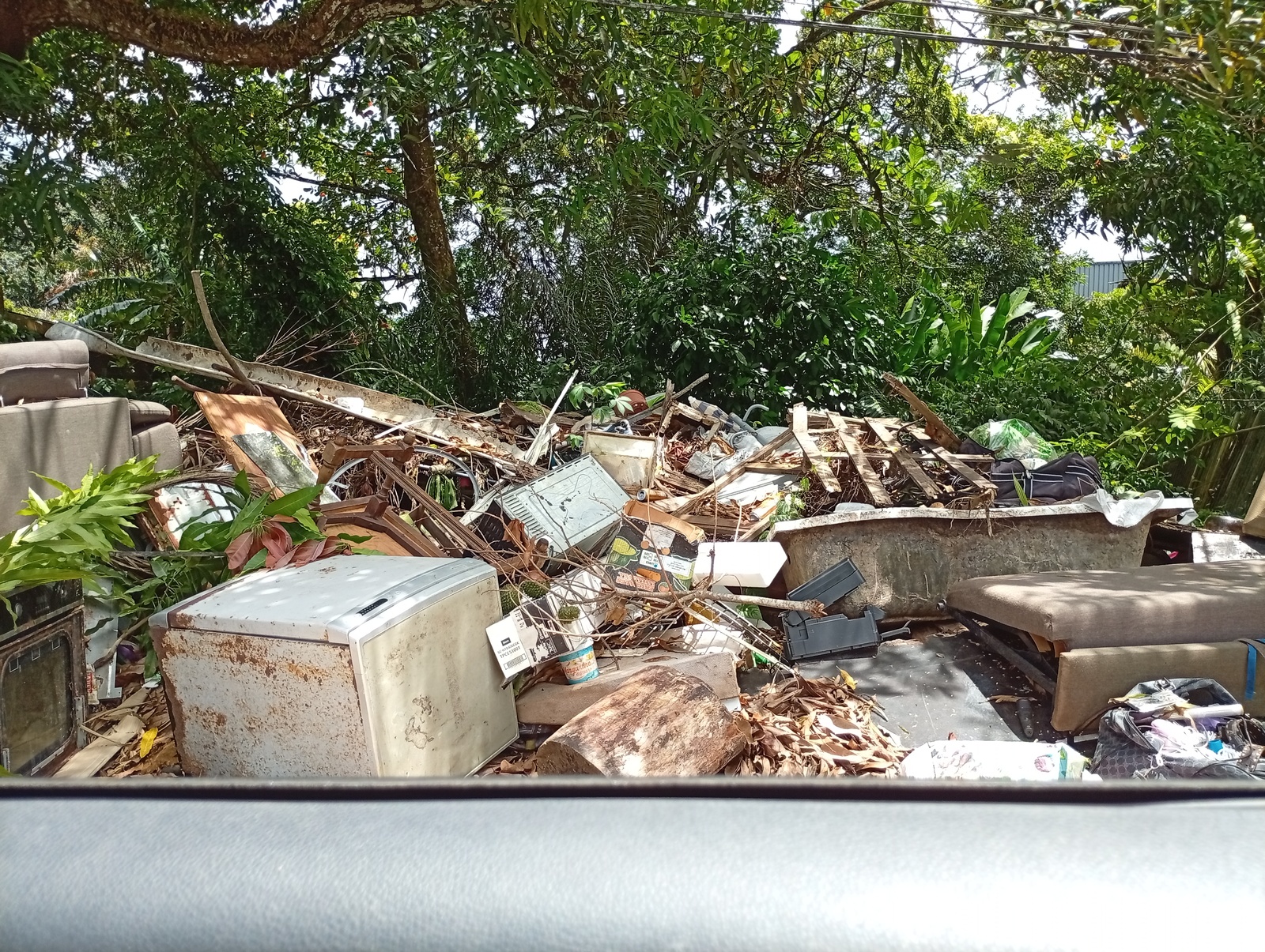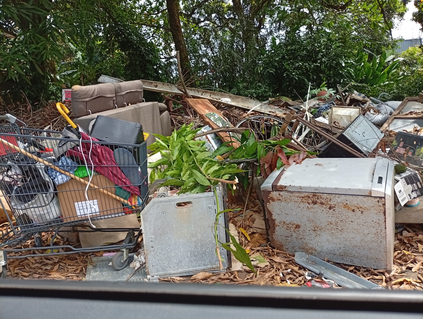 Un dépôt de déchets de moyenne ampleur a été signalé sur un terrain privé ouvert depuis plus d'un mois; il déborde sur la chaussée publique. Des rats ont été vus à l'intérieur ce qui pose un enjeu sanitaire.