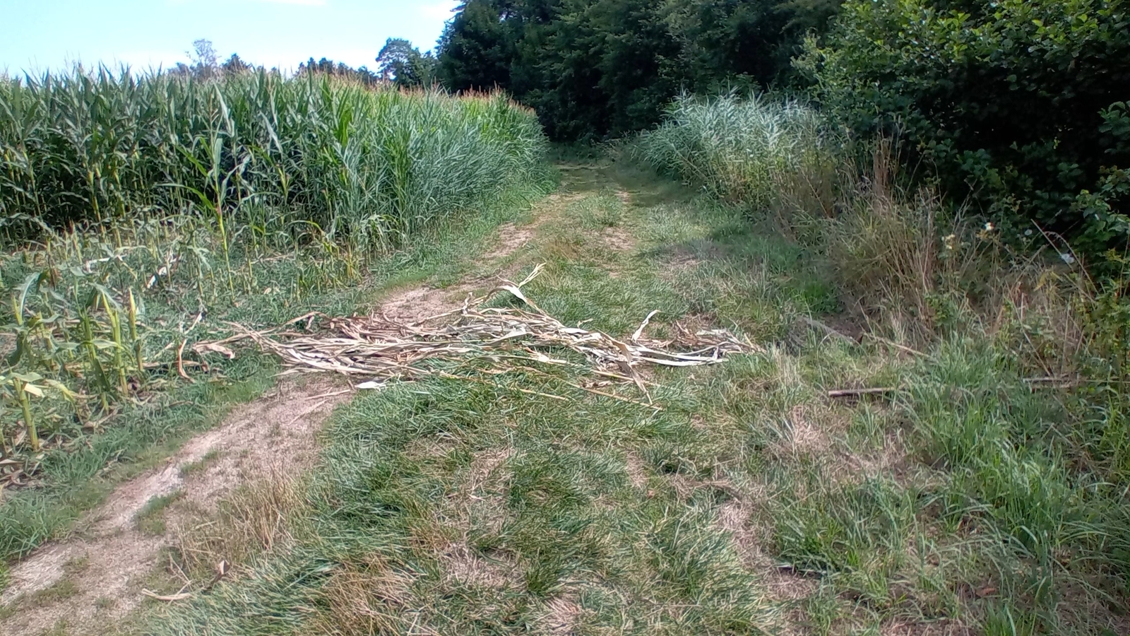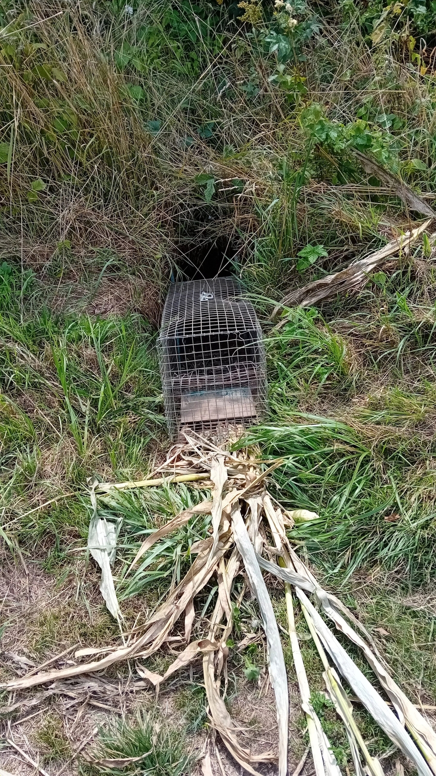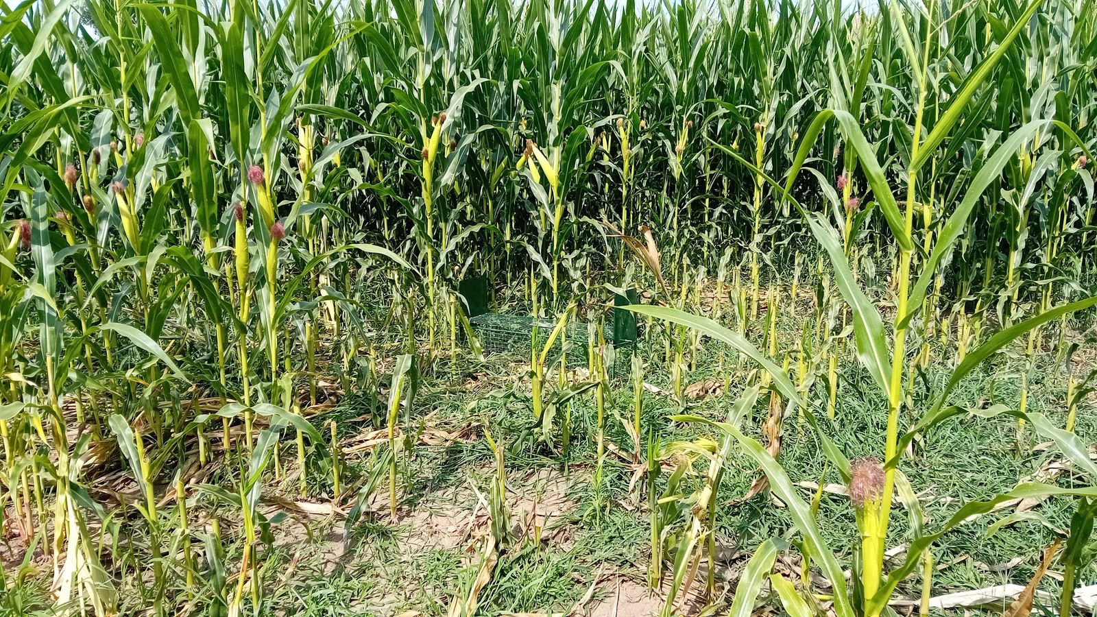 Plusieurs pièges ont été disposés en bordure d'un champ de maïs comportant des coupes de castor et sur des coulées menant à la rivière.
