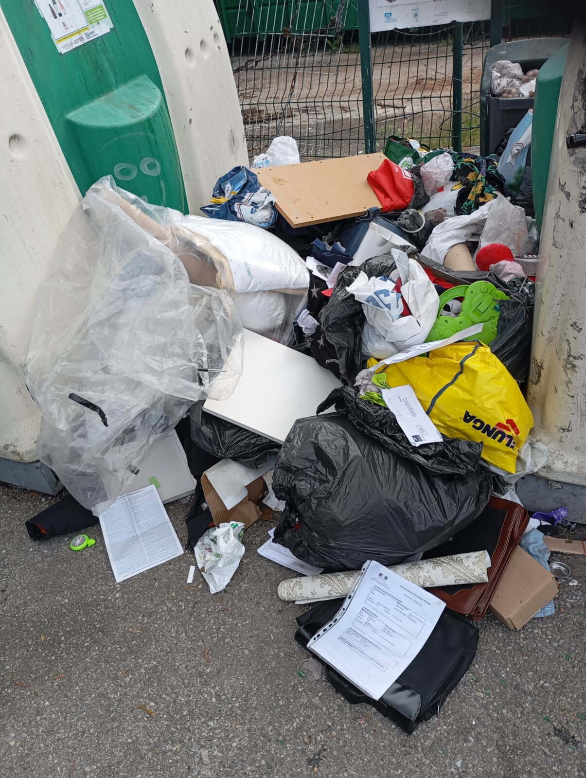depôt sauvage de déchets auprès des PAV devant la déchetterie; déchets de type ménagers avec un courrier d'identification => plainte déposée par la mairie en ligne le 19/09/2025