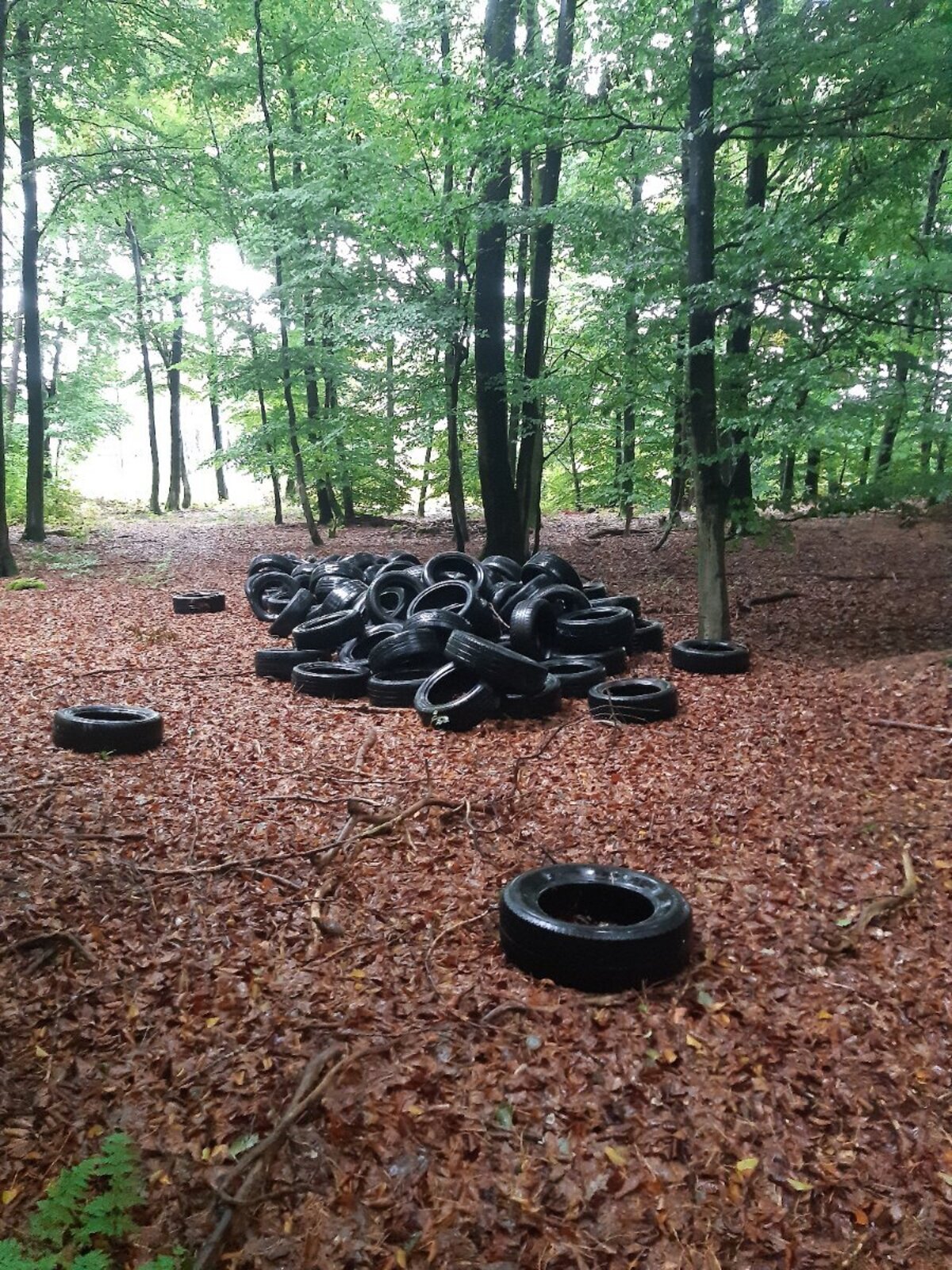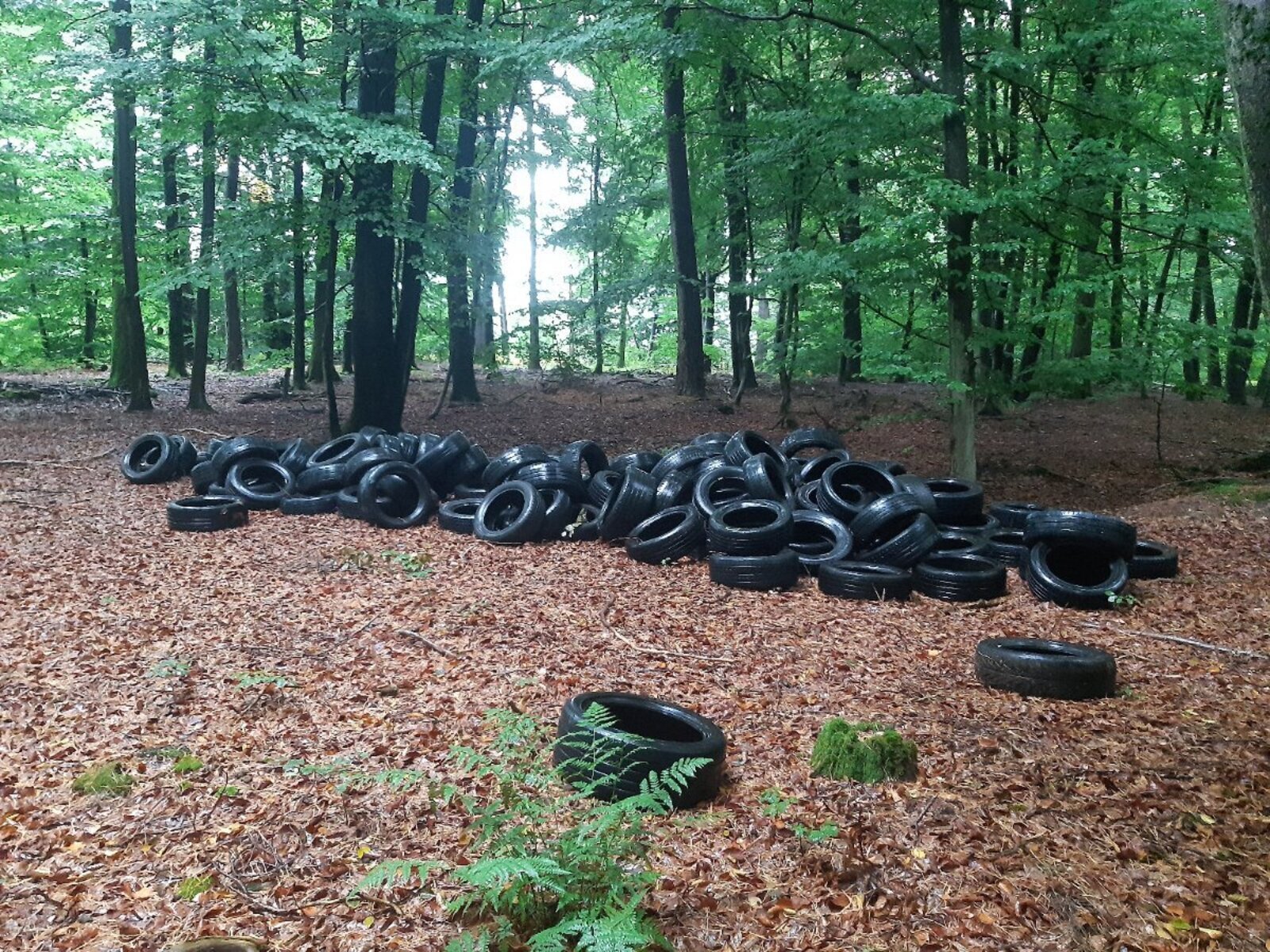Dépôt sauvage de pneus, dans une zone naturelle d’intérêt écologique, faunistique et floristique (ZNIEFF) de type 1, espace reconnu d’un point de vue écologique et qui abritent au moins une espèce et/ou un habitat rares ou menacés.