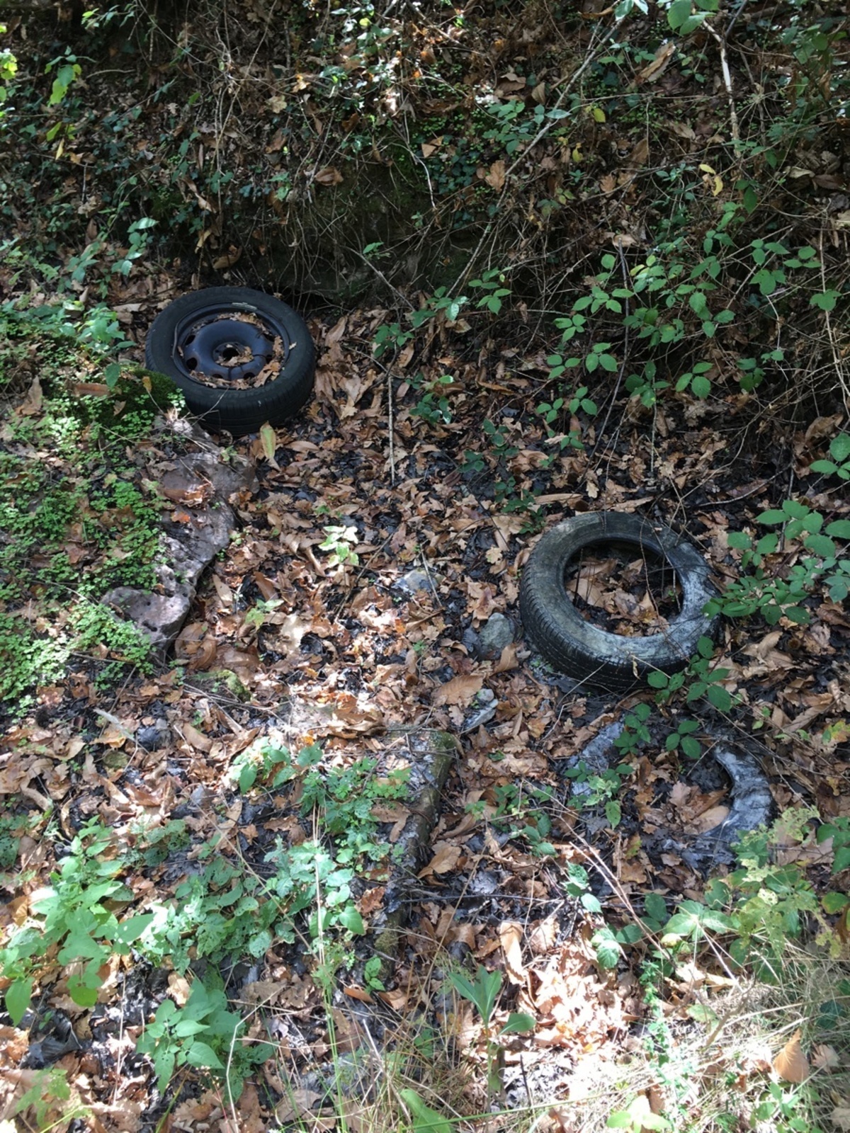 Abandon de roues et pneus en bord de chemin. La sentinelle en a averti la mairie.