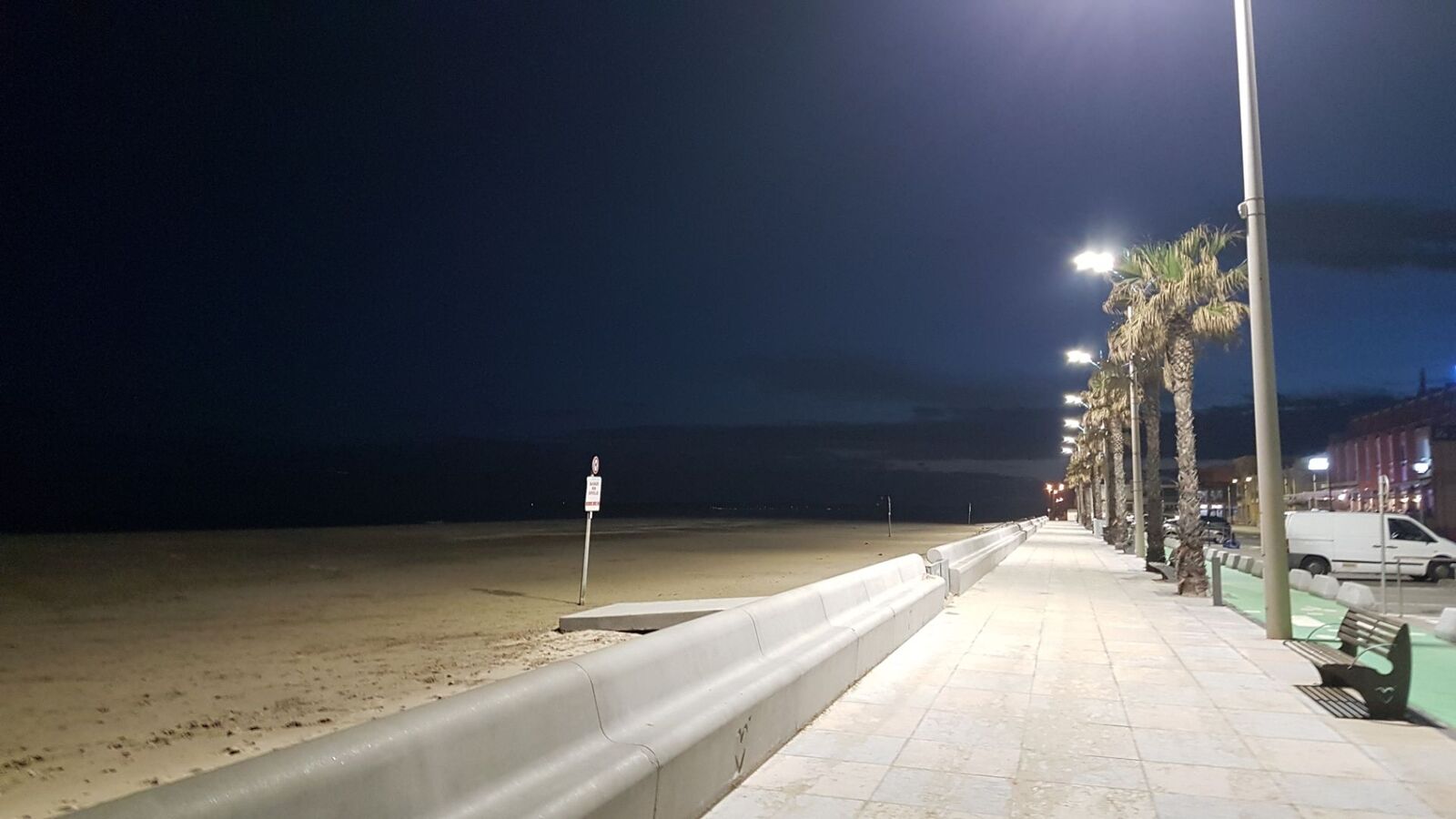 Éclairage illégal - lampadaires éclairant directement la plage qui fait partie du domaine public maritime.