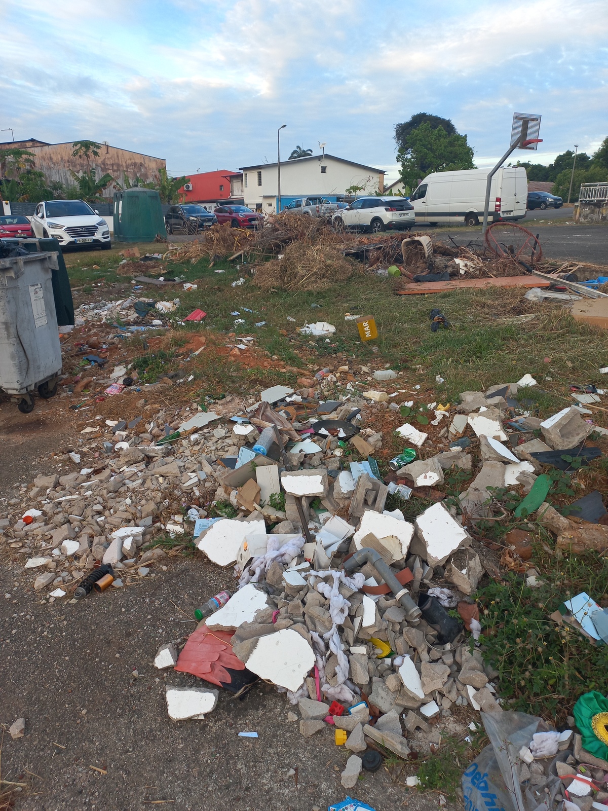 Un dépôt de déchets ménagers et de gravats [probablement des déchets professionnels] de moyenne ampleur et récurrent depuis plusieurs années a été signalé sur un espace public.
