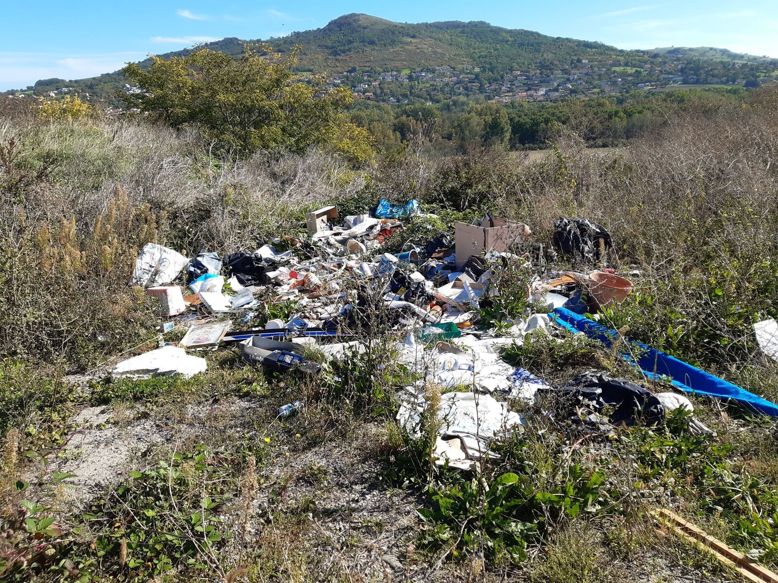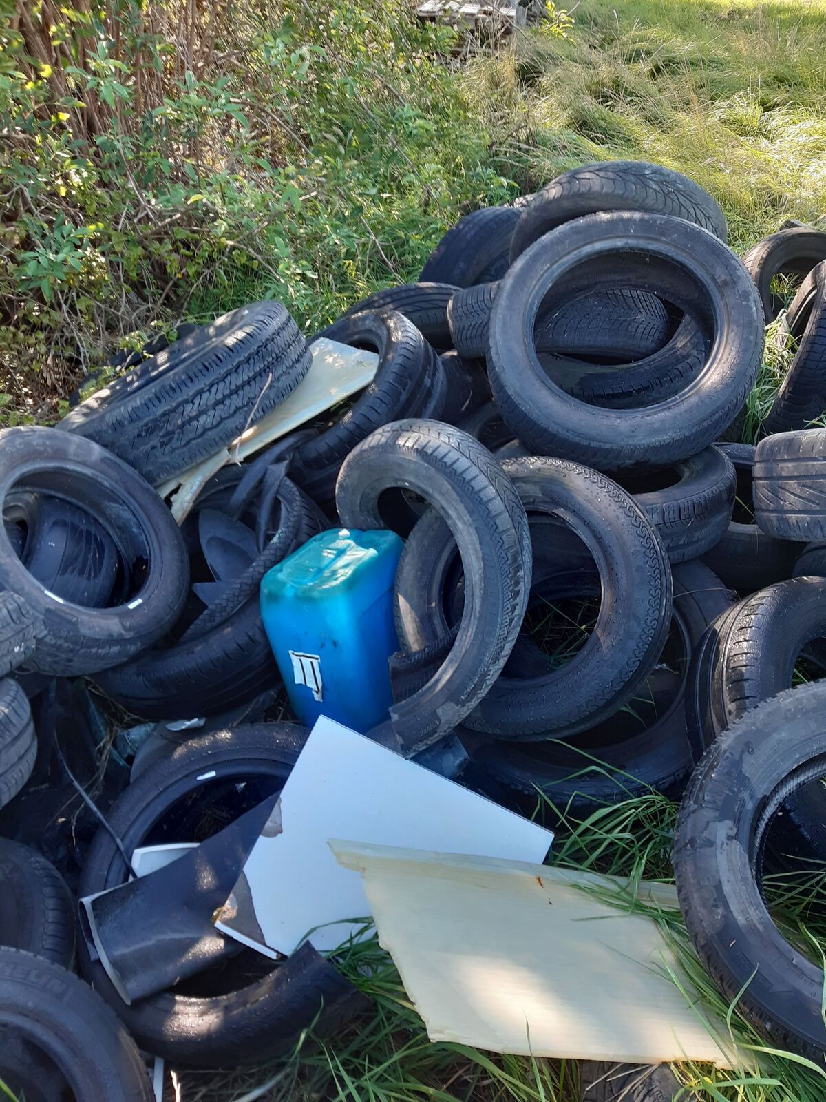 Dépôts sauvages importants de divers déchets, dont des pneus au-dessus de l'ancienne Mine des Rois, site normalement interdit d'accès.