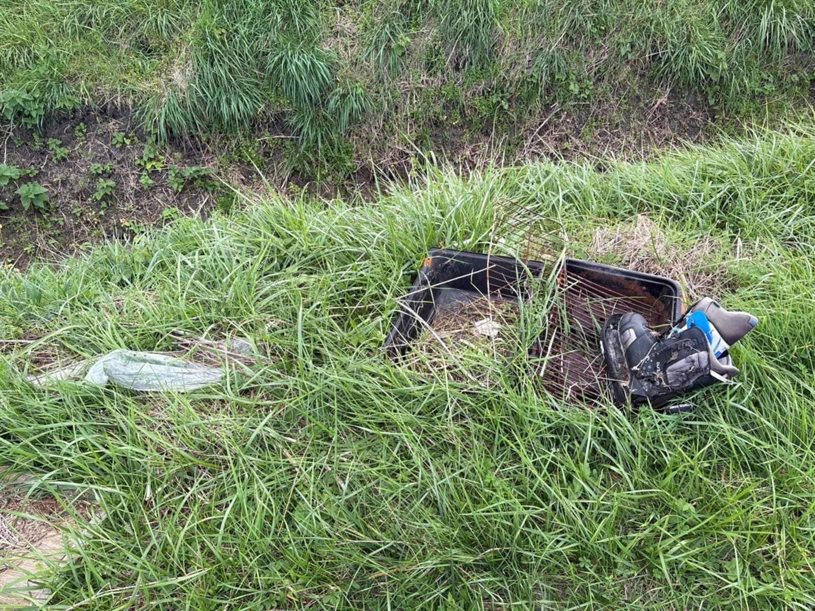 Présence depuis plusieurs semaines d'un dépôt sauvage de déchets divers en bord de chemin carrossable.