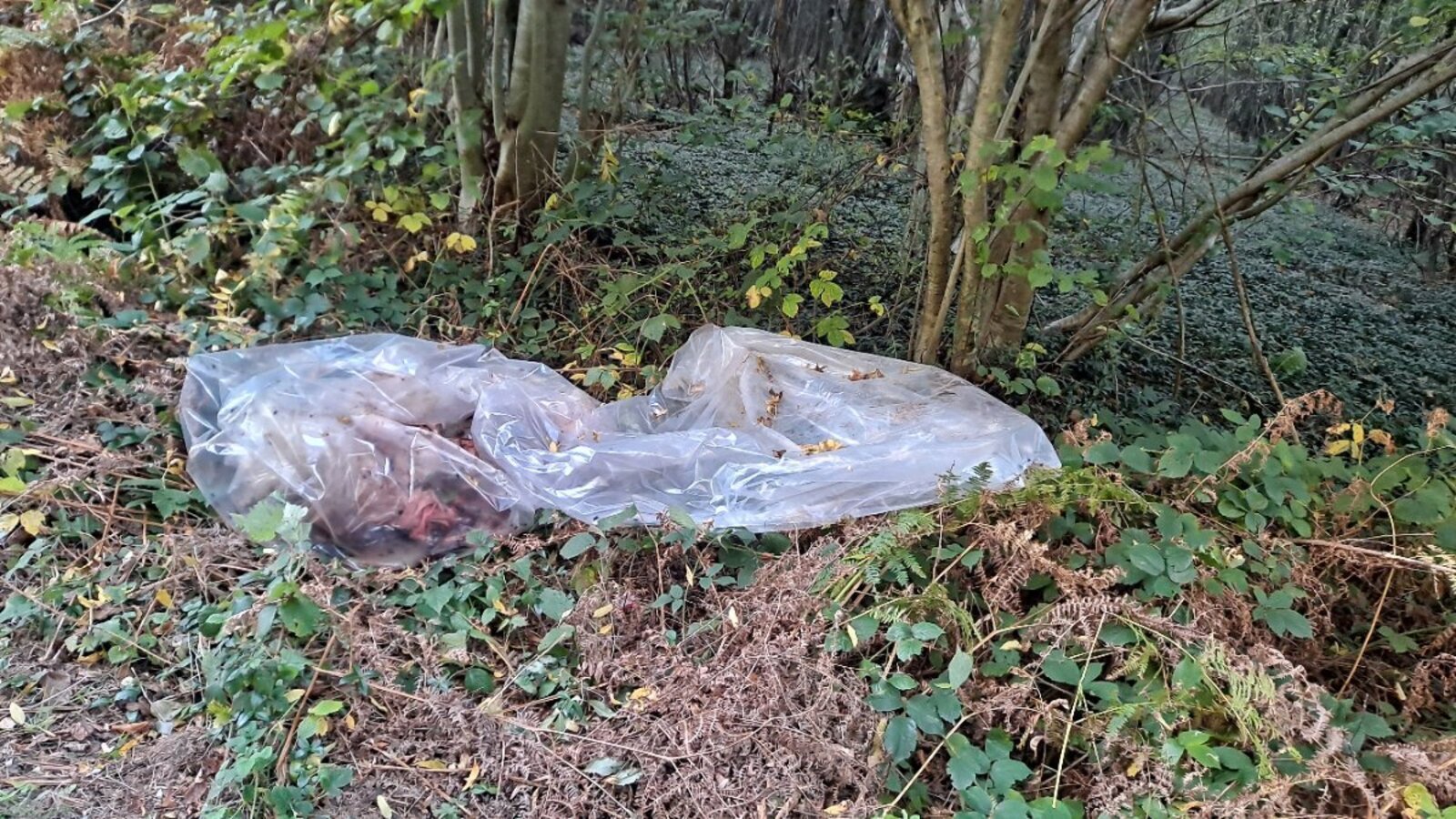 Présence de déchets organiques enveloppés dans une bâche en forêt de Louviers au bord de la route forestière d'Incarville.