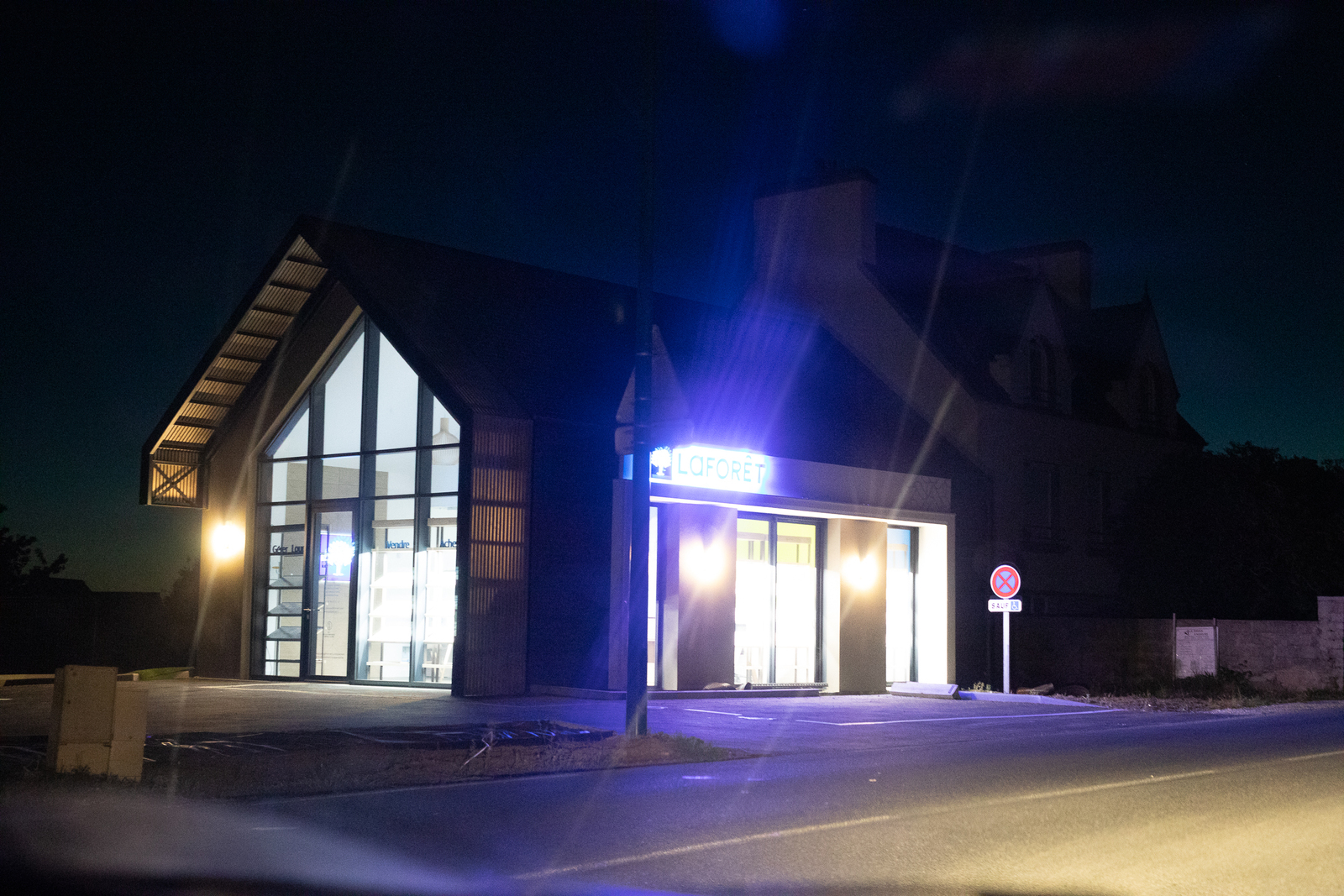 Cette agence produisait beaucoup de pollution lumineuse lors de son installation. Le gérant à gérer l'éclairage pour se conformer à la loi suite à mes demandes. Je tiens donc à signaler cette évolution favorable.