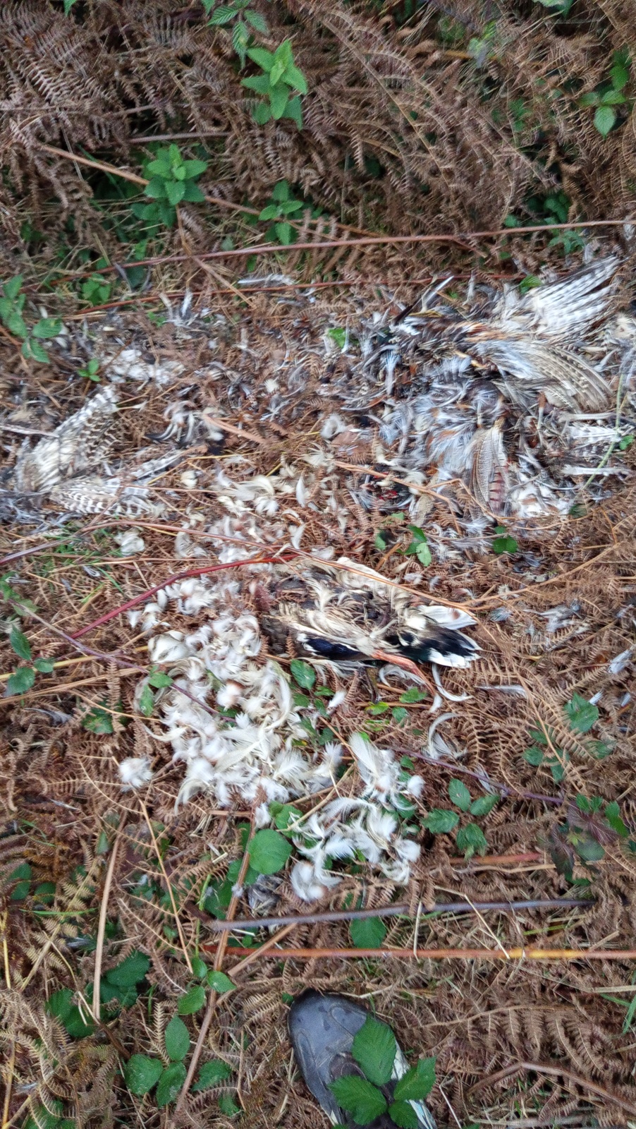 Cadavres des oiseaux chassés laissés dans la forêt
