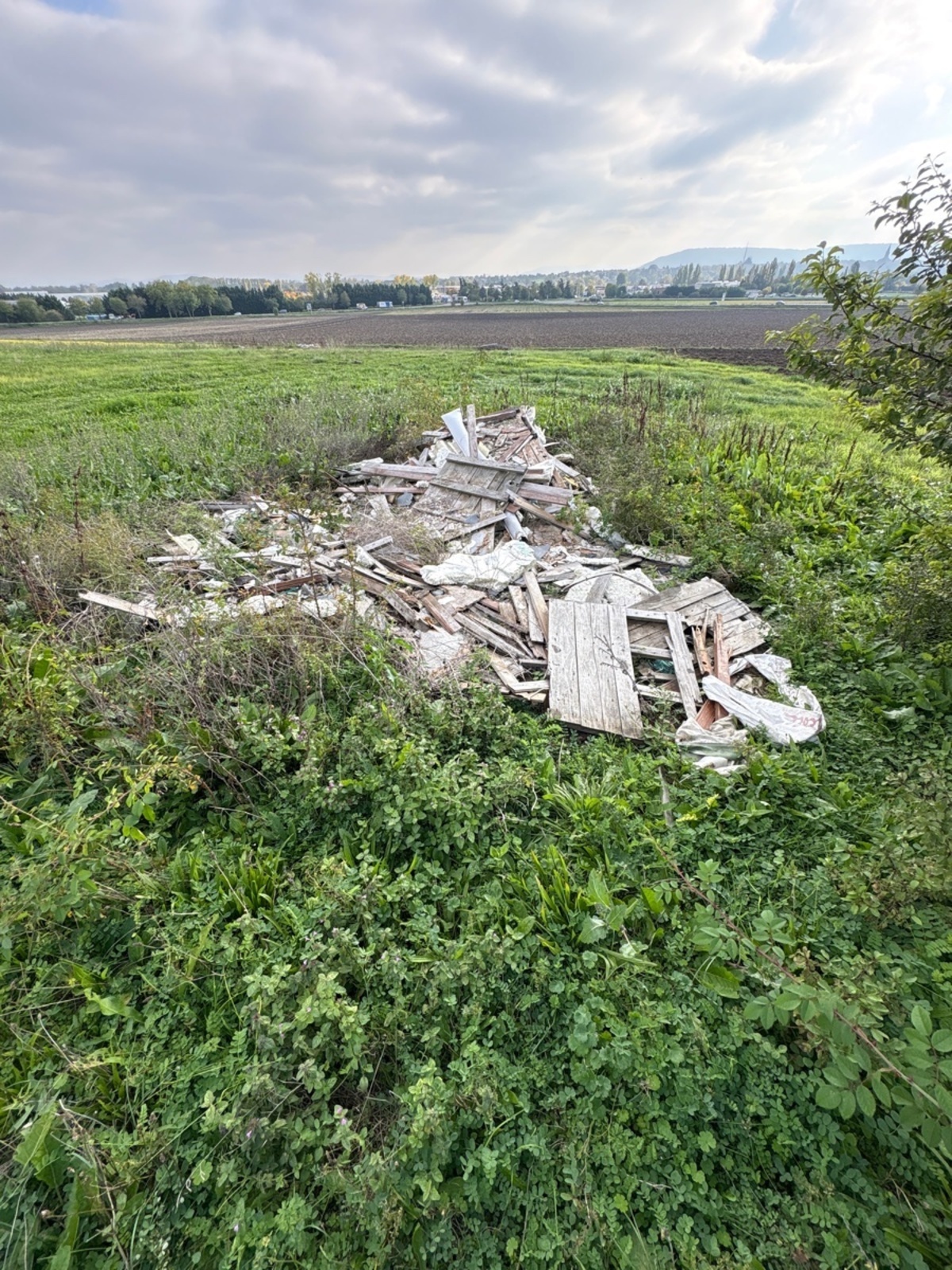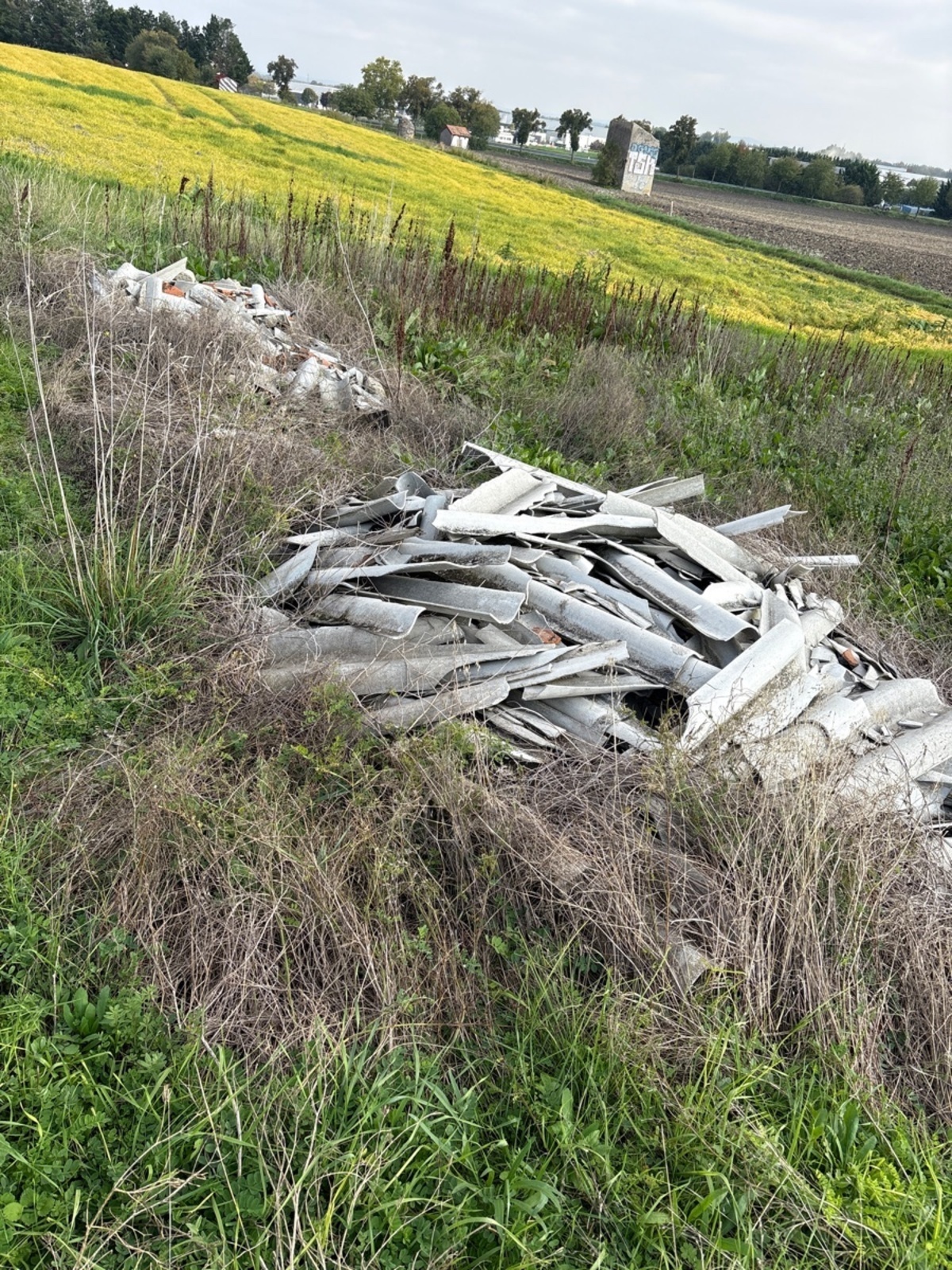 Présence de planches issues de démontage, polystyrène, gouttière, déchets de fibrociment amianté