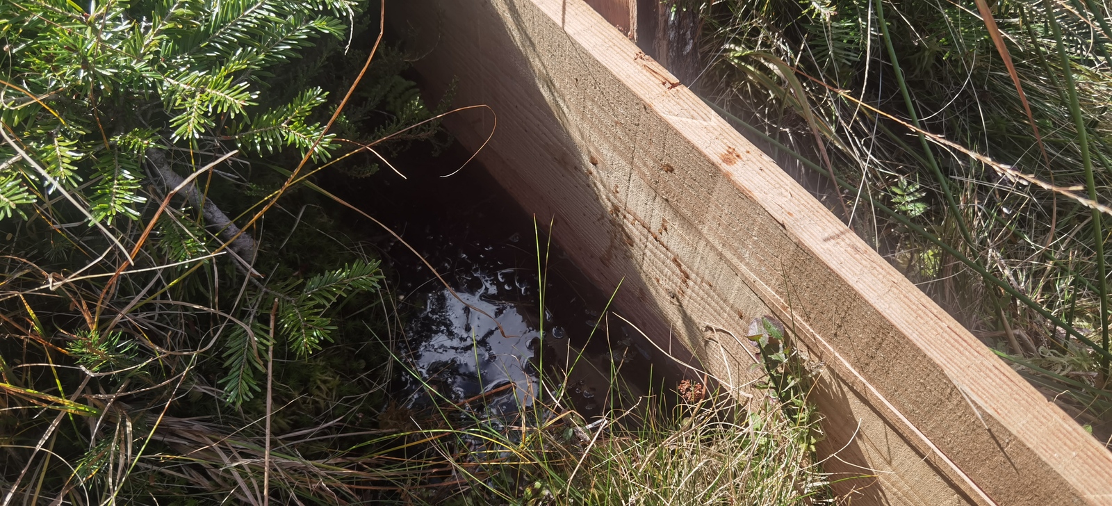 Restauration de zones humides dégradées par drainage : bouchage de drains pour ralentir l'eau et ré-humidifier la zone humide.