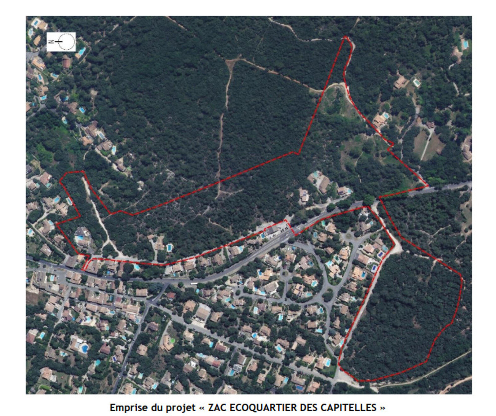 Le projet des Capitelles à Sussargues, qualifié d'éco-quartier, est prévu en extension de l'urbanisation sur 11 hectares de boisements et garrigues.