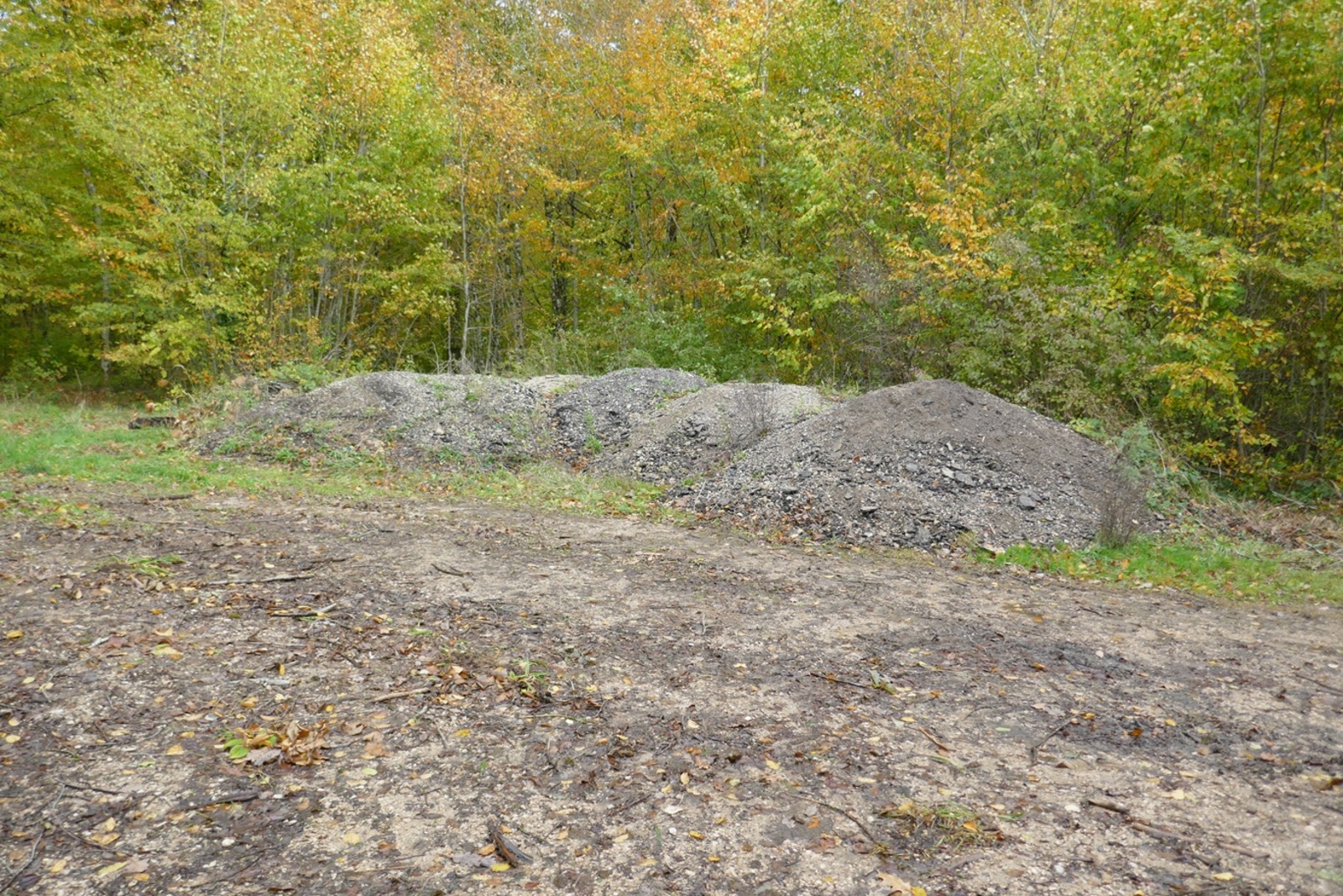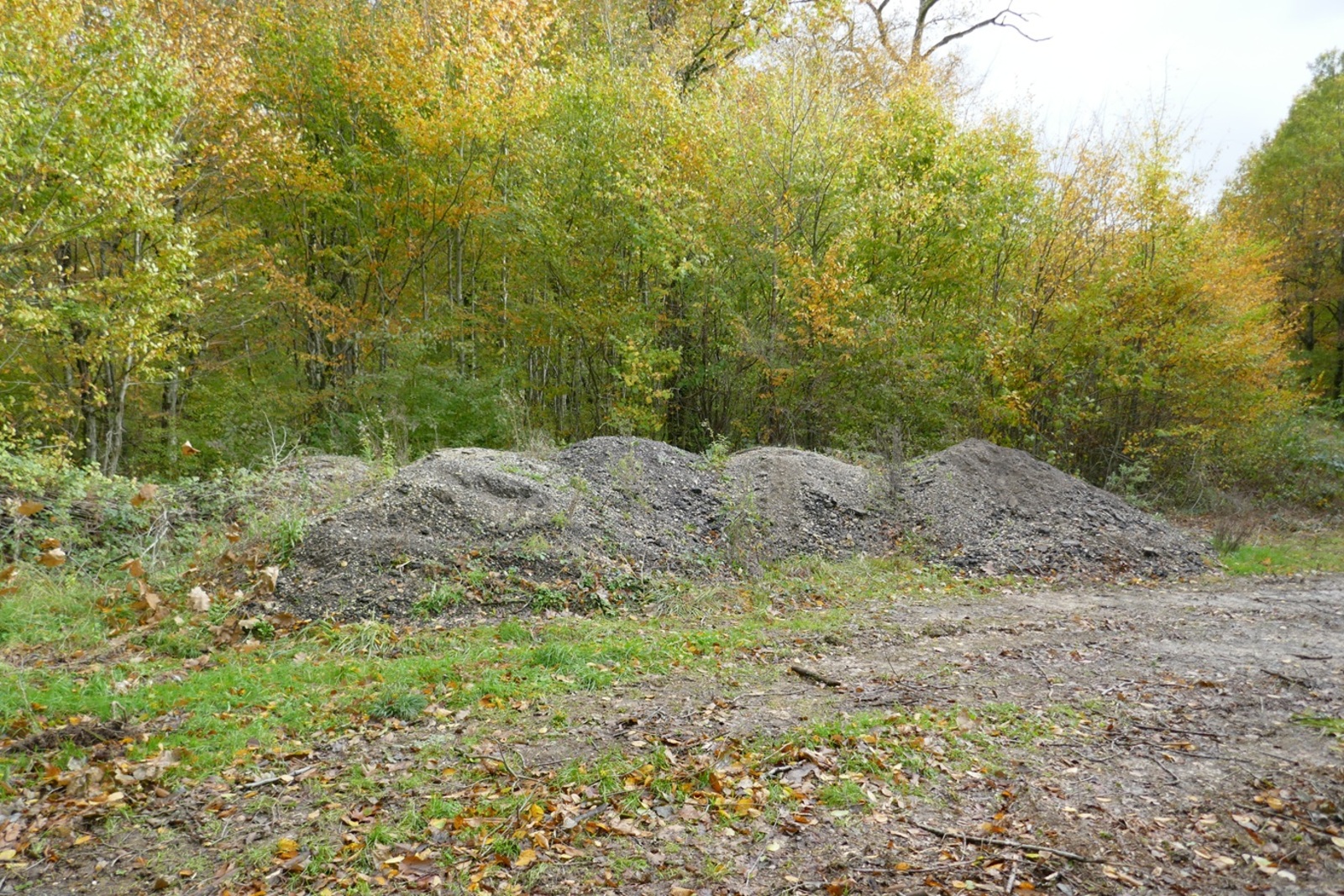 Dépôt de gravier et de macadam depuis plusieurs années avec un volume d'environ 30 à 40 m3.