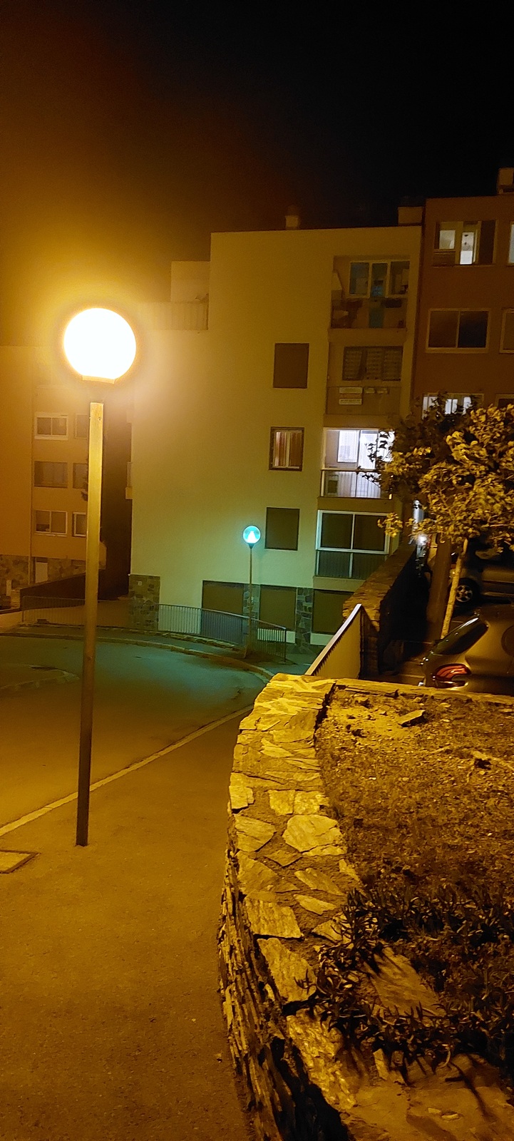 [Éclairage illégal] Lampadaires boules rue Jean Iché : ces derniers, qui projettent de la lumière vers le haut, sont interdits depuis le 1er janvier 2025.