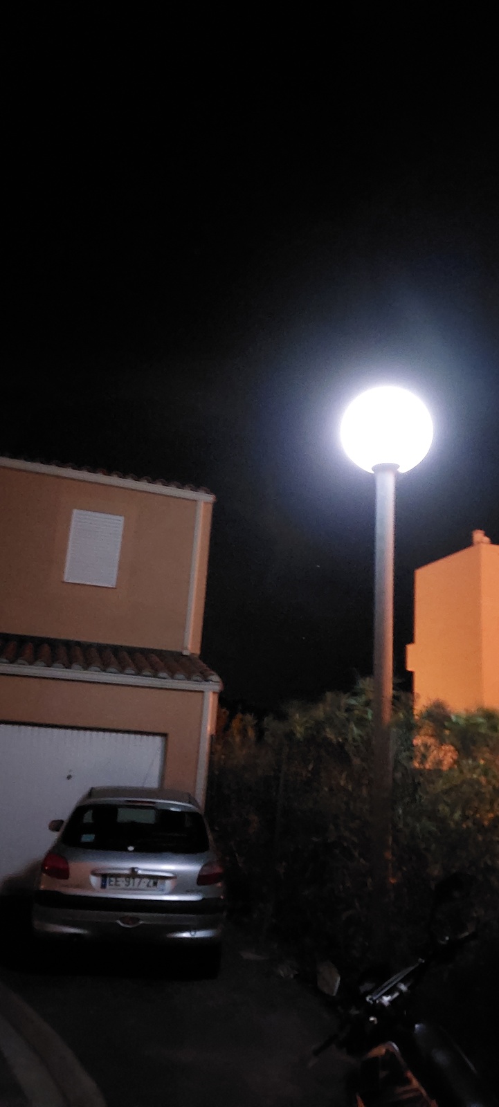 [Éclairage illégal] 3 lampadaires boules autous de la résidence Les Bastides d'Azur : ces derniers, qui projettent de la lumière vers le haut, sont interdits depuis le 1er janvier 2025.