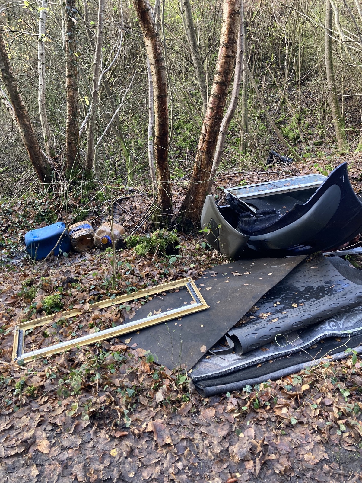 Dépôt de pièces de réparation automobile. 5 ou 6 bidons de 20 litres pleins sont également présents.