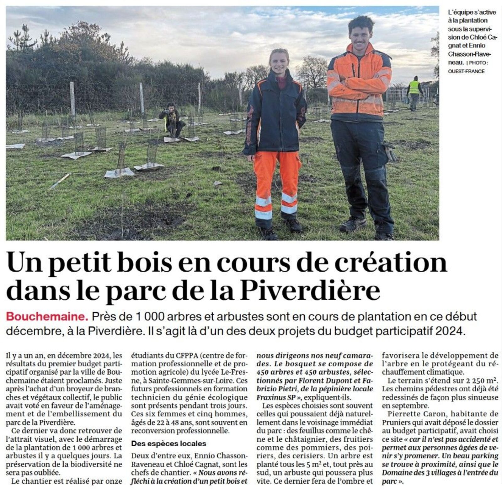 Sur un terrain de 2250 m², 450 arbres et 450 arbustes seront plantés : chênes, chataîgners, pommiers, poiriers, cerisiers...
