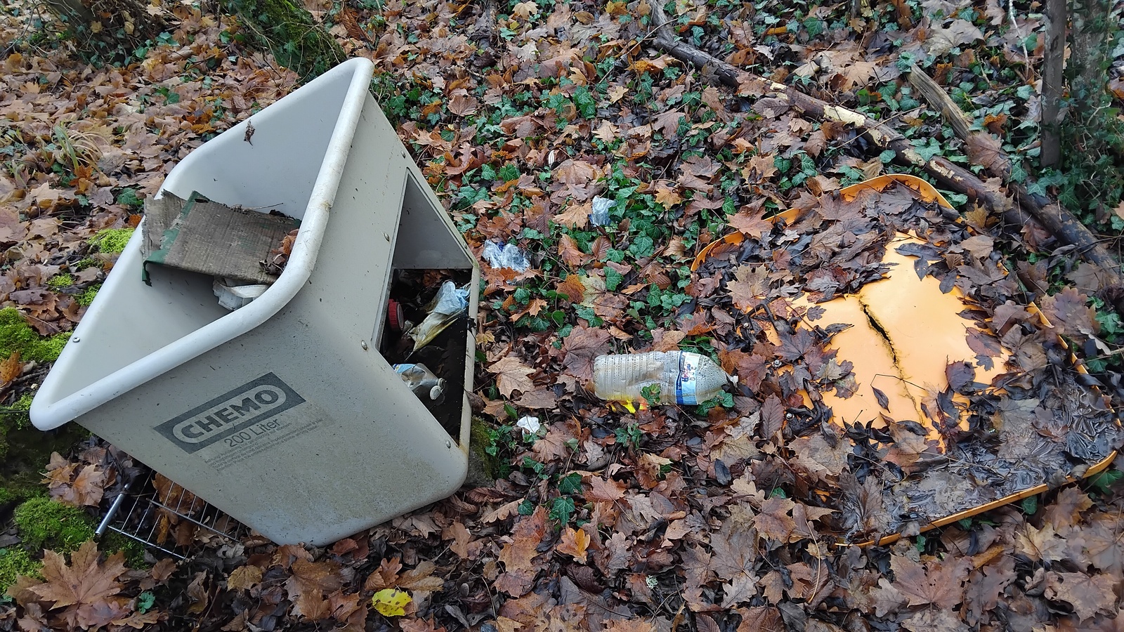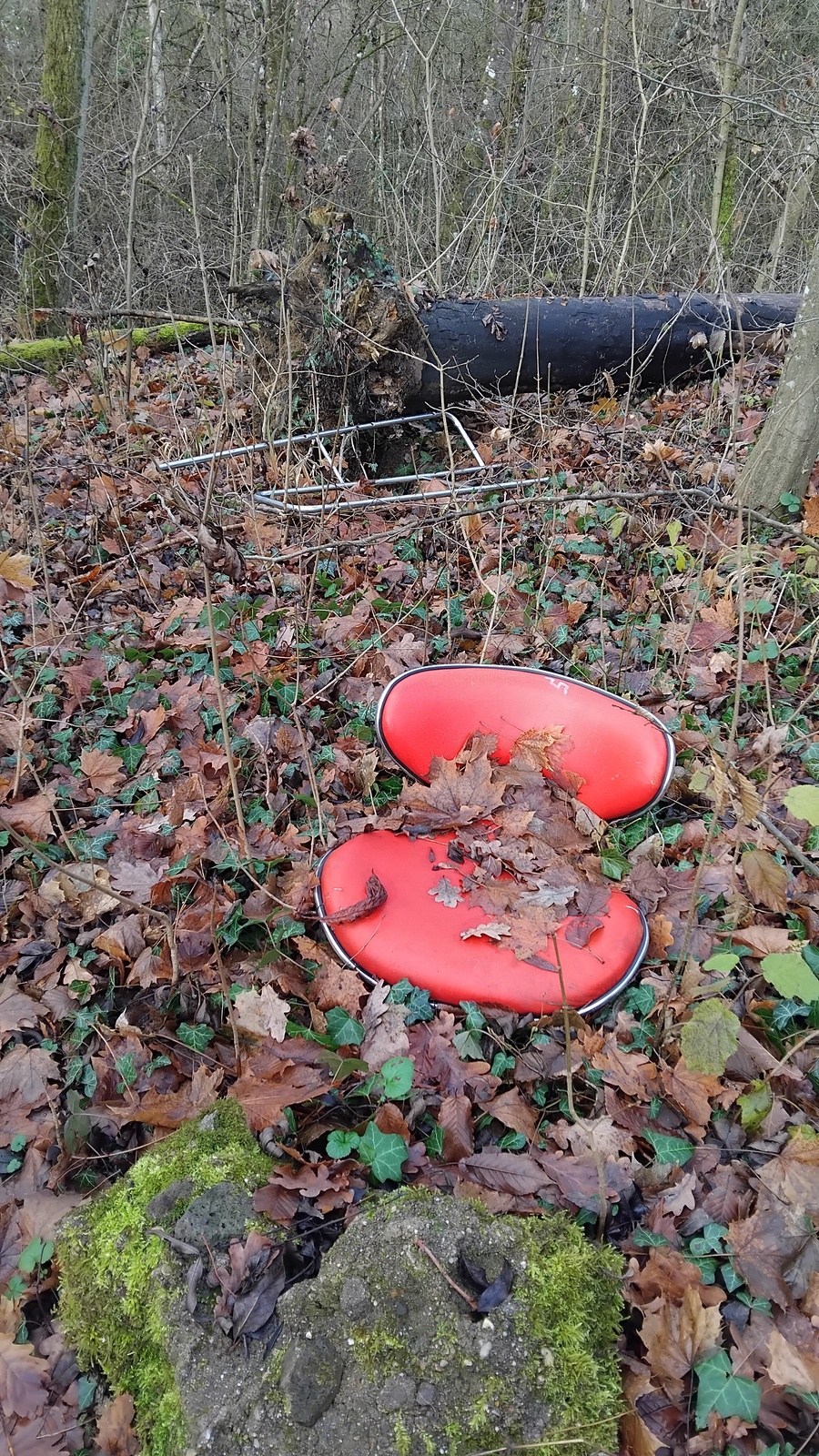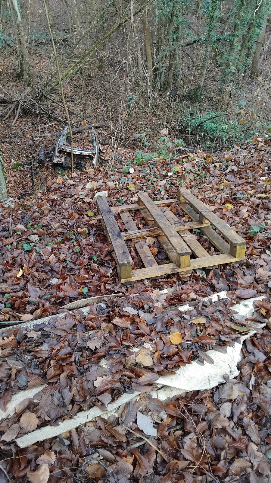 Présence de nombreux déchets (moquette, pot de peinture, poussette, grille, enjoliveur, pots de jardin, palette, plastiques divers, taule, pneu, chaises...) le long du sentier qui relie l’allée du Fort à St-Julien-les-Metz, à la route de Bouzonville à Metz Vallières, et en contrebas de celui-ci des deux côtés du chemin.