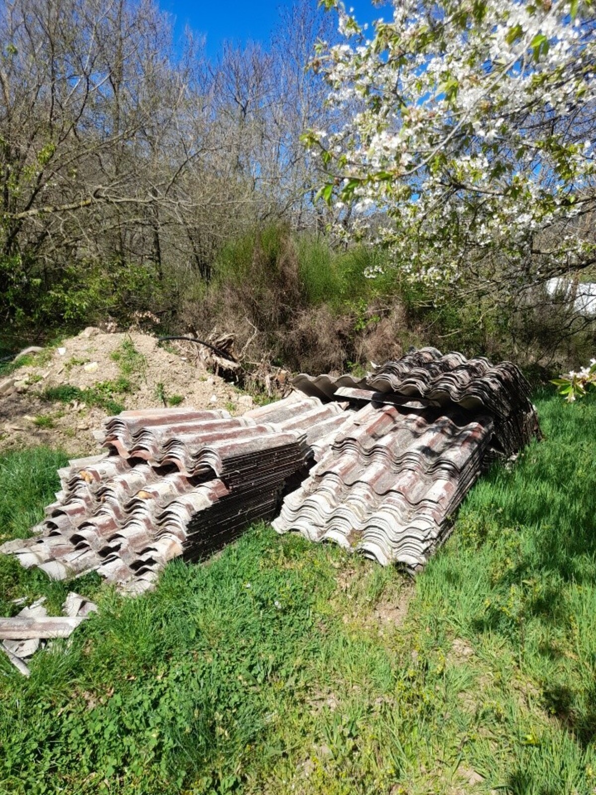 Dépôt sauvage d'une centaine plaques d'amiantes sur un terrain communal à proximité d'un aire de repos - Environ 3m3