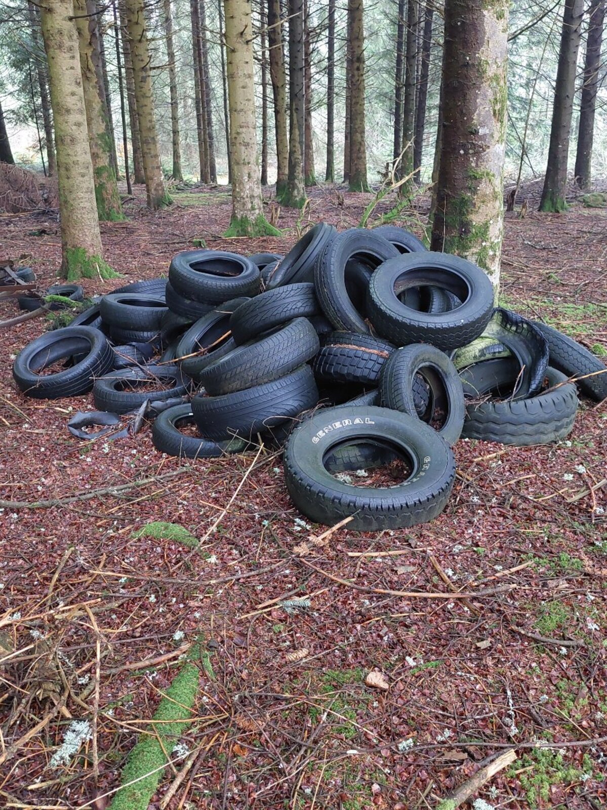 Tas de pneus dans la forêt