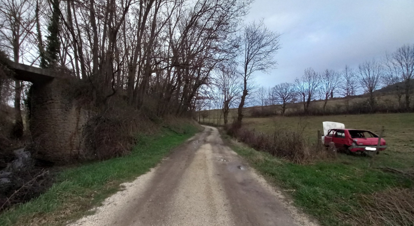 VHU à proximité immédiate d'un cours d'eau, dans un champ. Le VHU est visiblement à l'abandon depuis longtemps, en bord de champ privé jouxtant un cours d'eau. Un mail à la mairie a été envoyé.