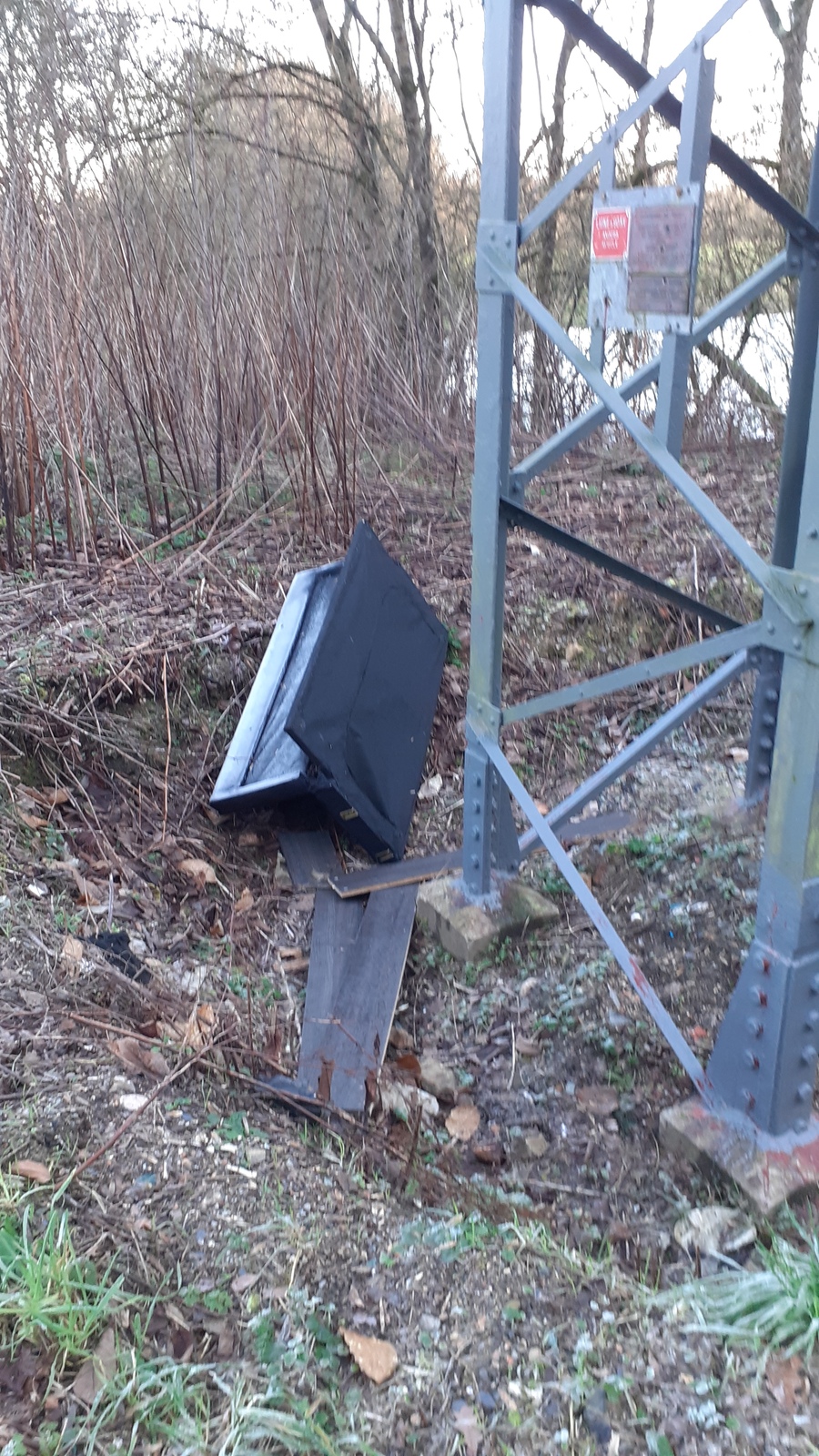 Le 18 janvier 2026 matin, la sentinelle a constaté que le canapé au pied du pylone et le meuble dans le talus avaient été retirés. Ne restent qu'une caisse et un bidon en plastique et des cartons sur le bas côté de la route.