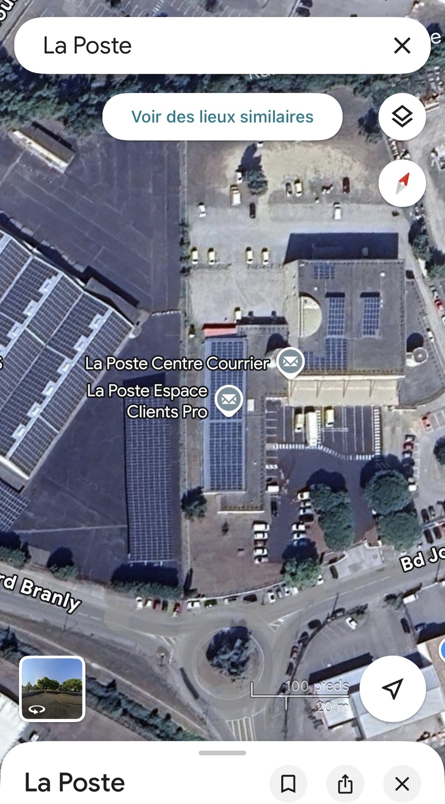 Ombrières photovoltaïques sur la toiture du hangar de La Poste.