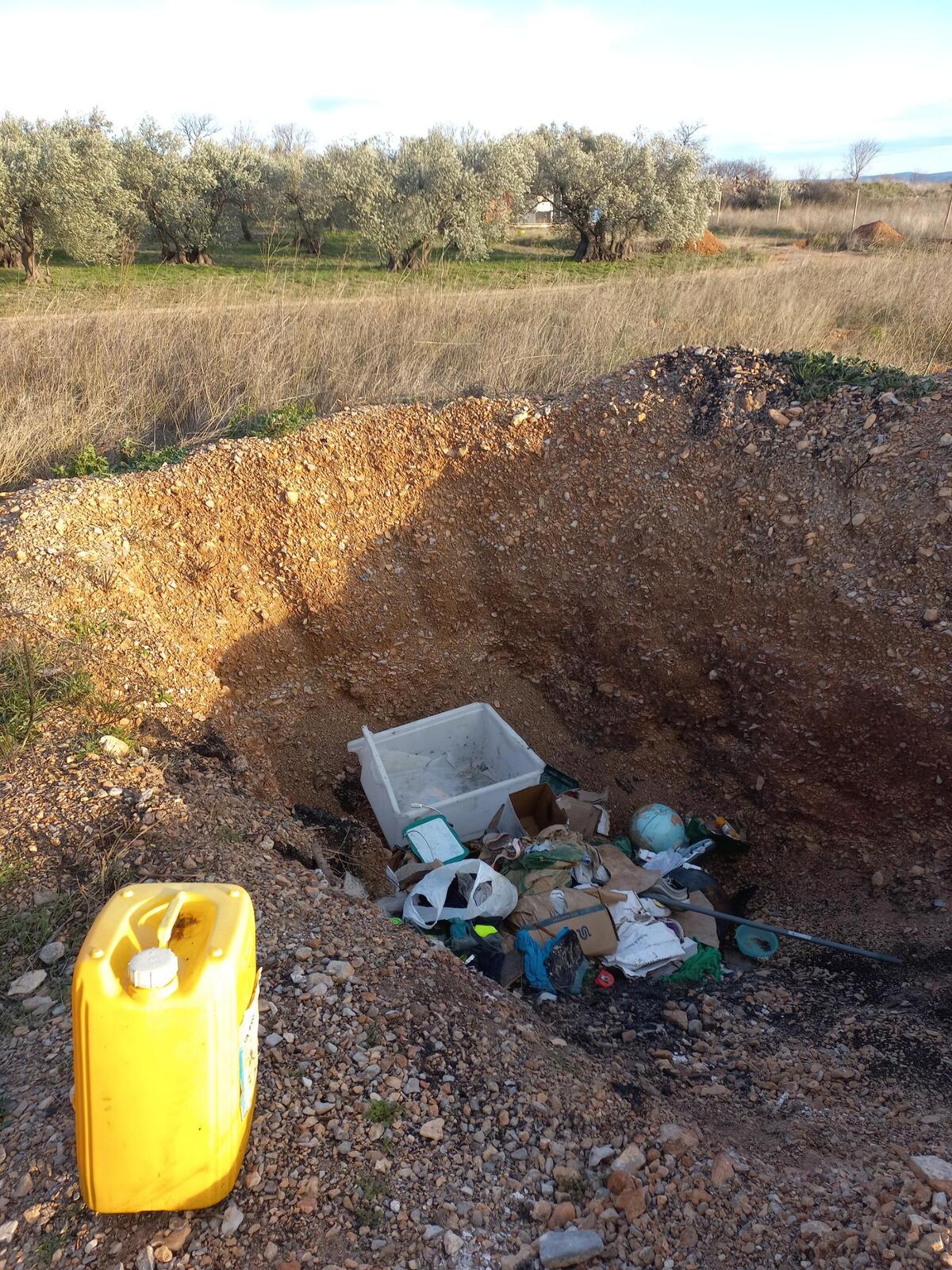 En zone agricole, un trou a été creusé visiblement pour y enterrer des déchets