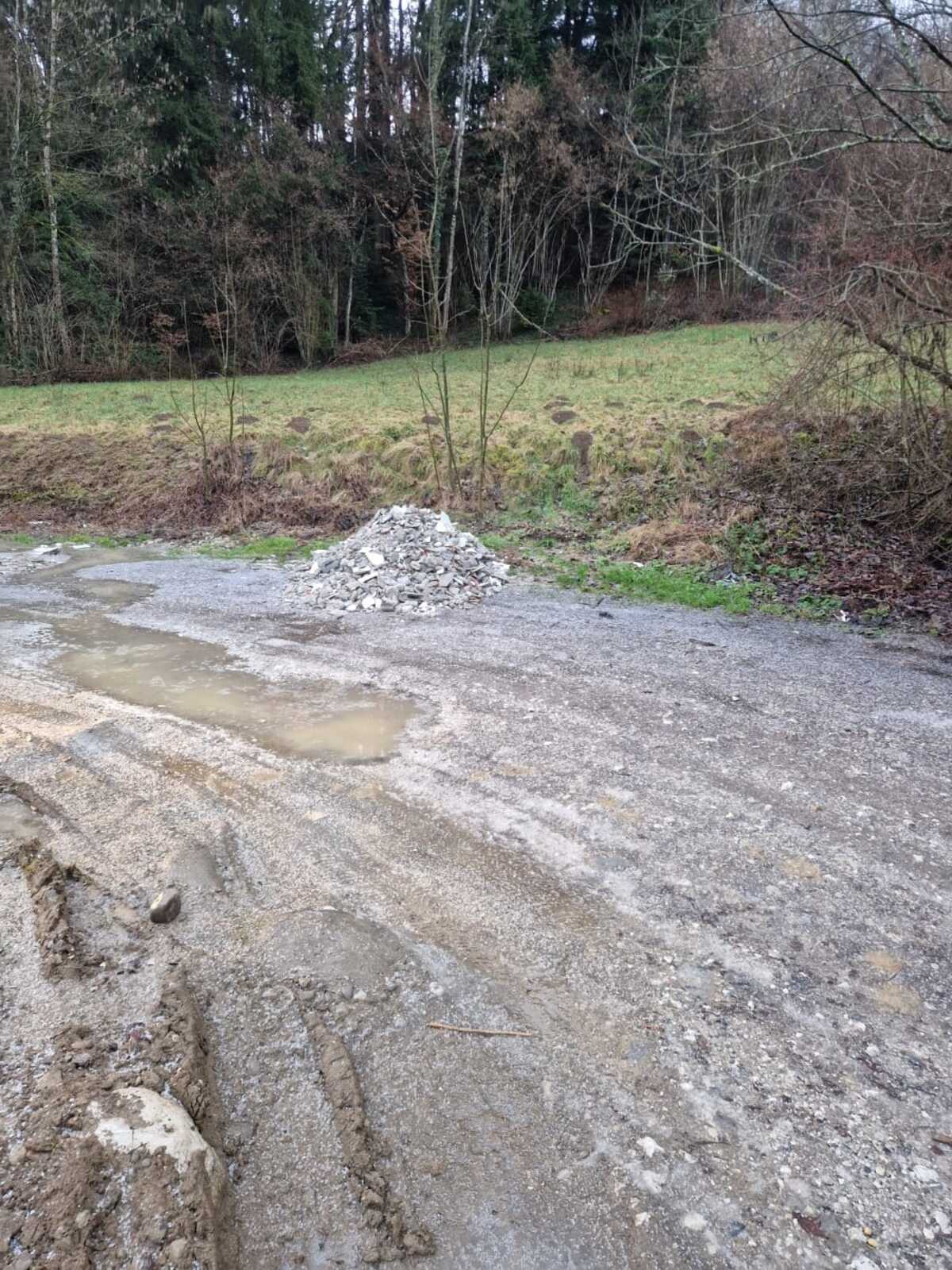1à 2 m3 de déchets inertes de type gravats ont été constatés sur le chemin en terre (ancien tracé de route non goudronné) de la RD 215, dite route des Argos à Annecy.
