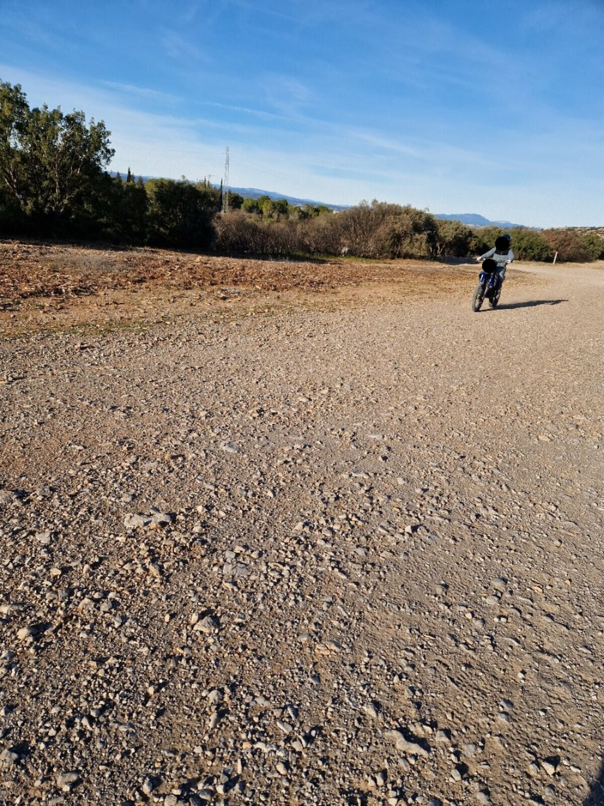Circulation de motos-cross en zone naturelle, sur un santier où la circulation de véhicules à moteurs est interdite.