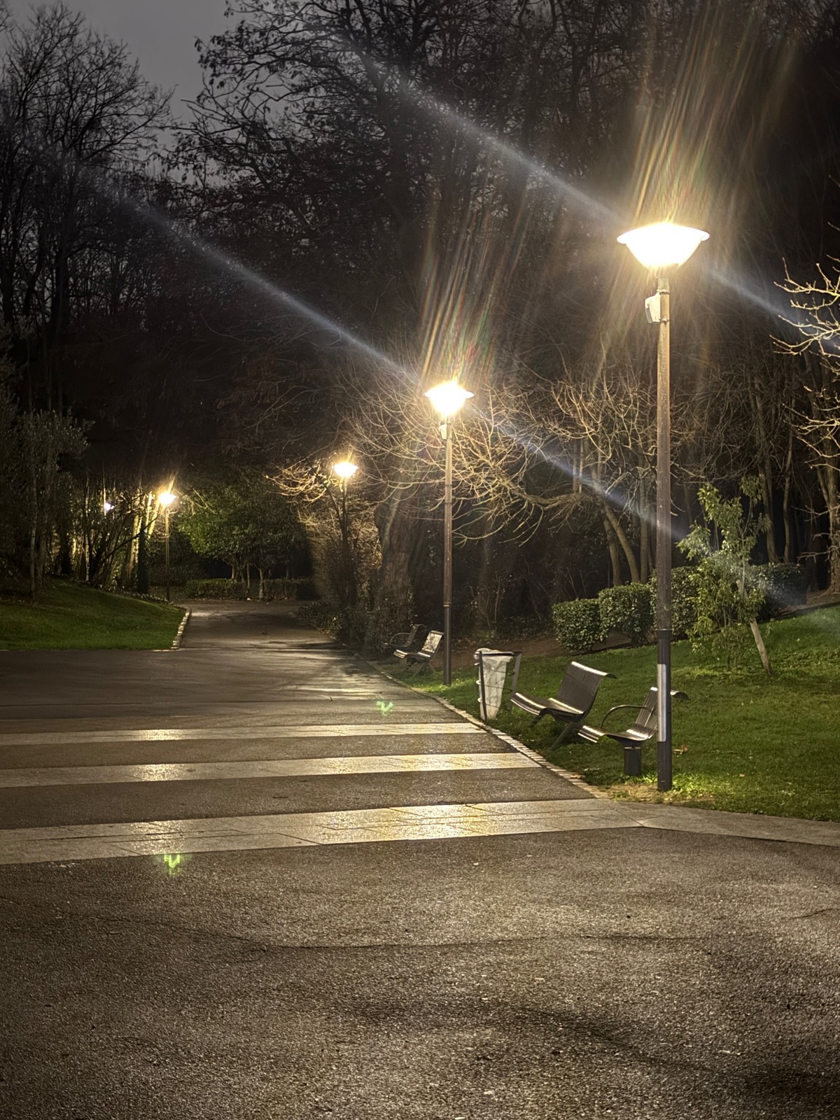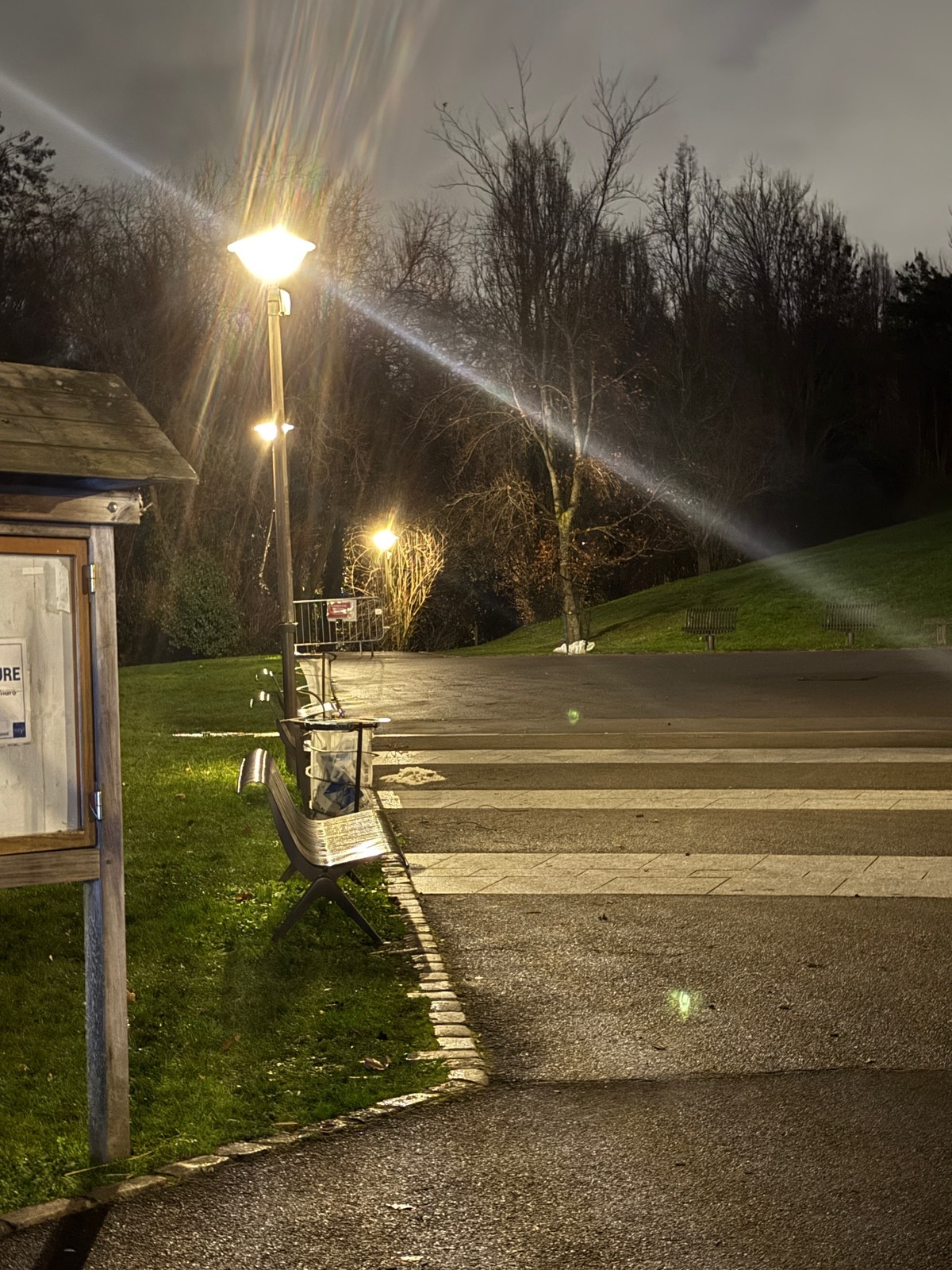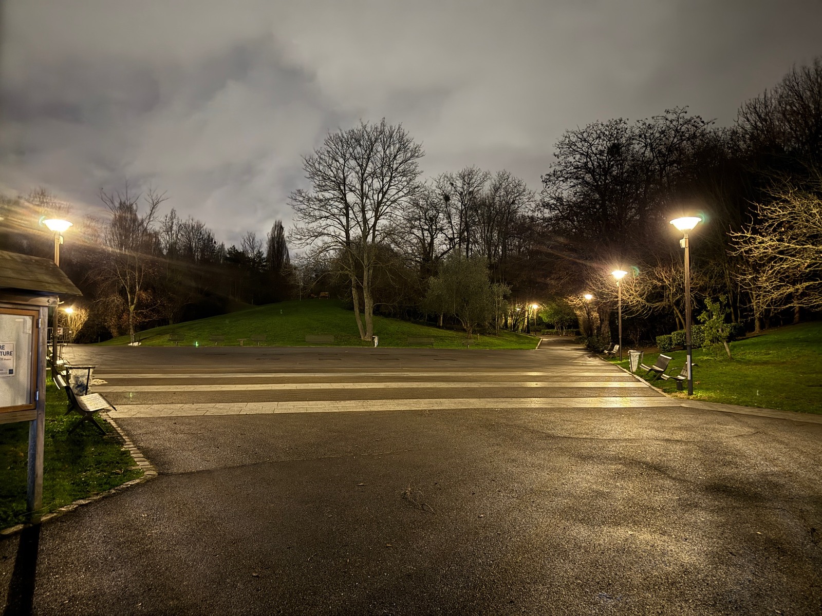 Les éclairages du parc Jean Decesari à Rosny-sous-Bois, restent allumées la nuit, après la fermeture du parc.