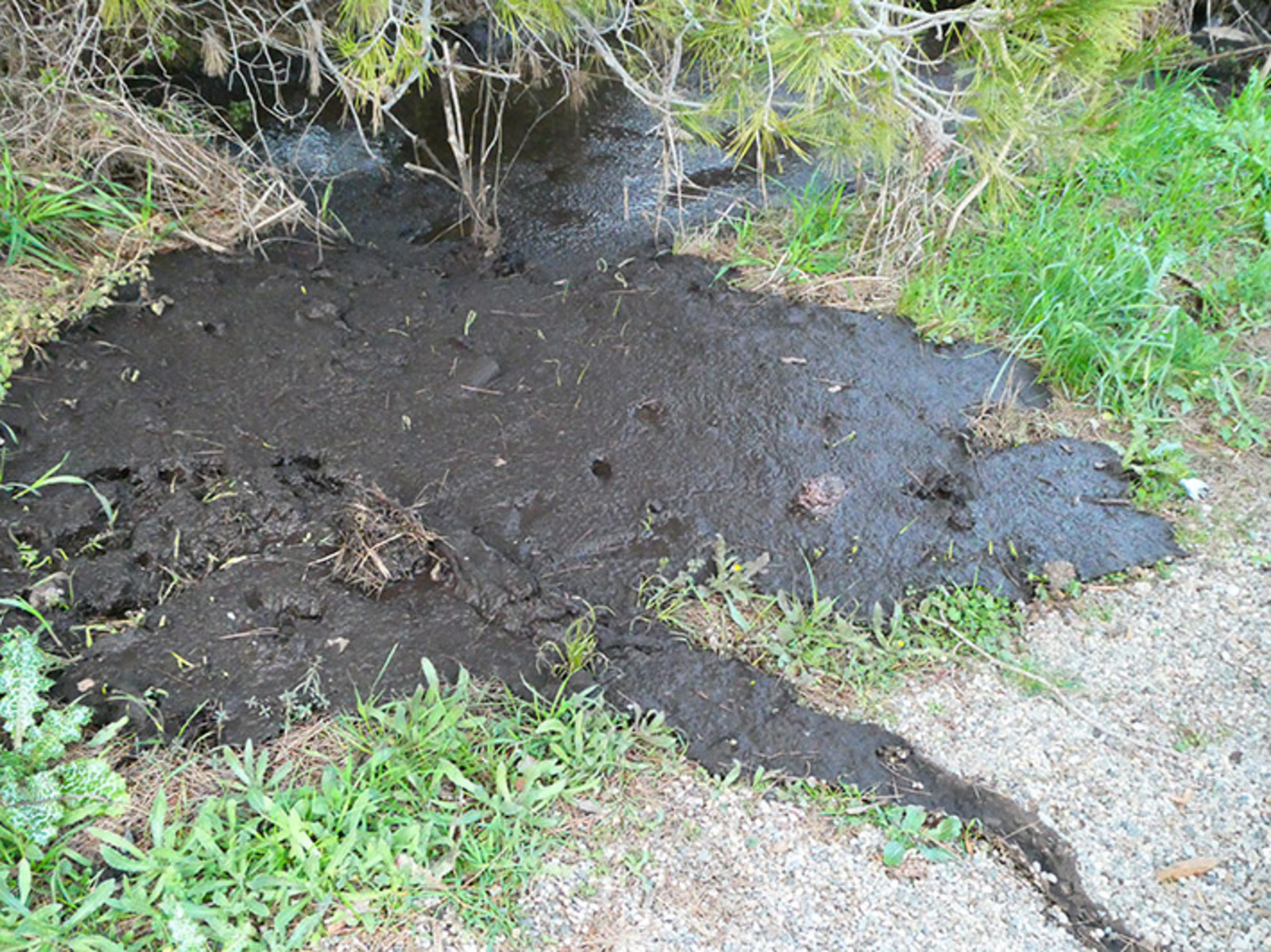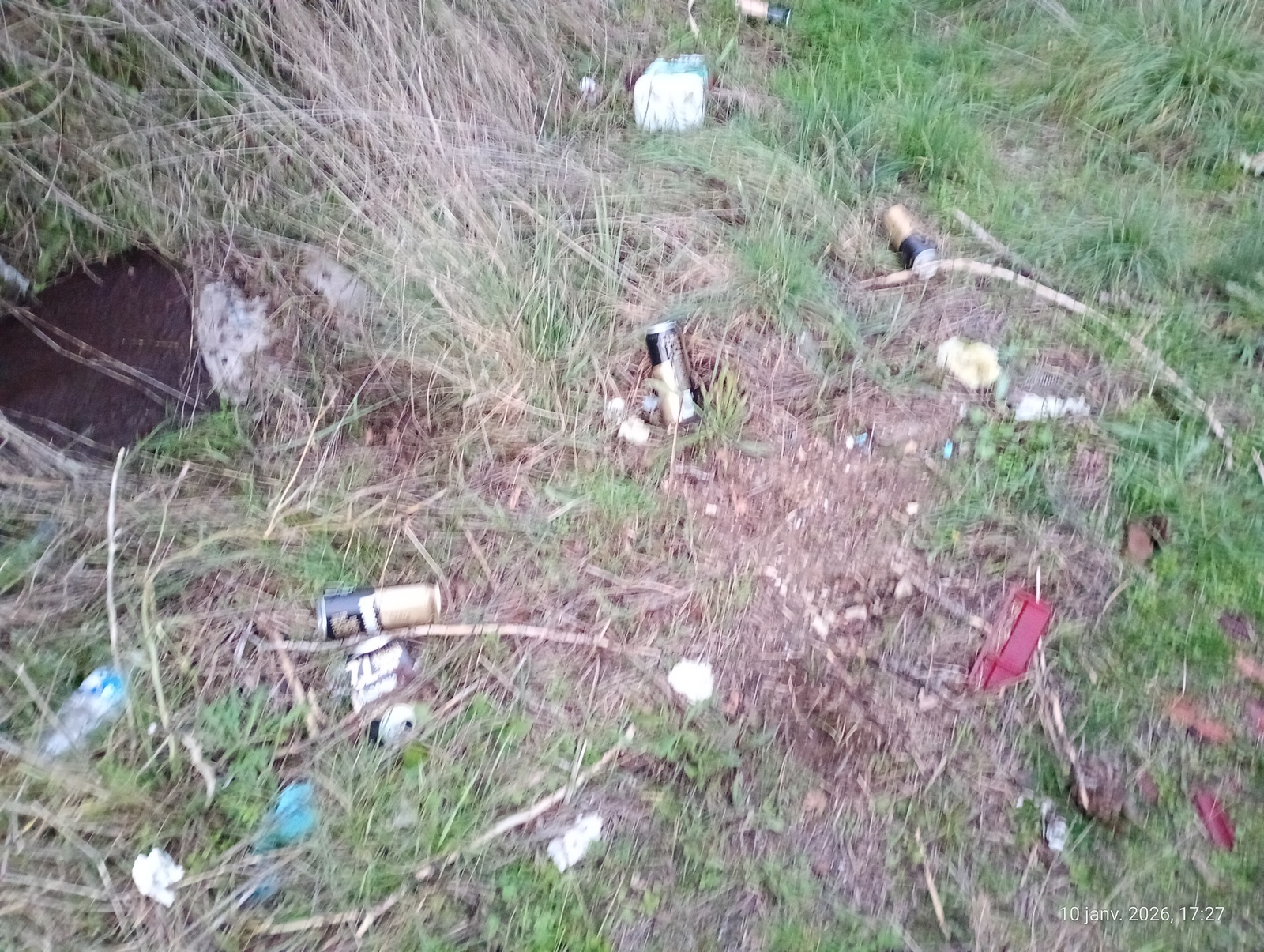 Dépôts sauvages de déchets de différents types : déchets ménagers du type emballages, et dépôt de boues