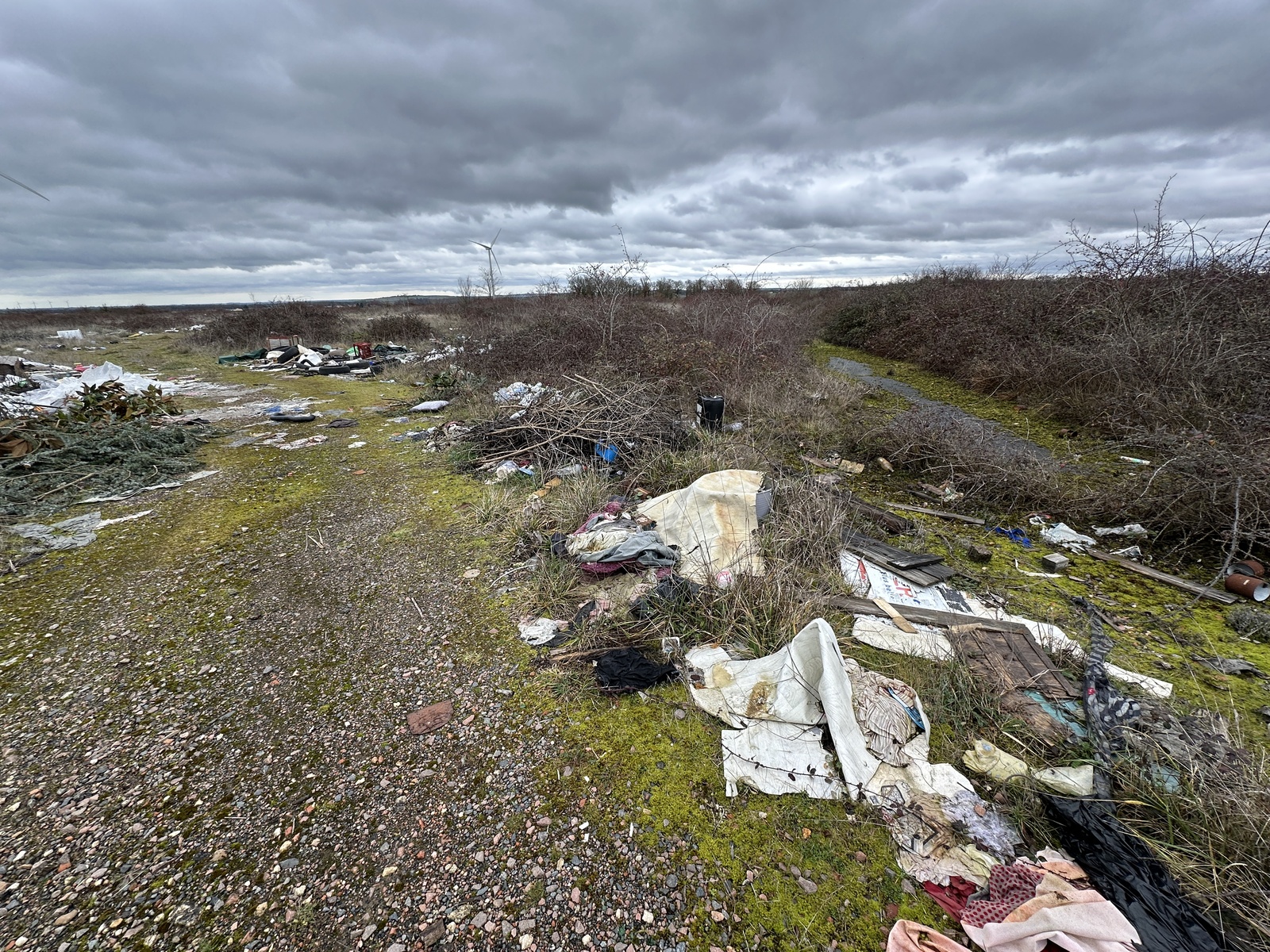 Sur ce terrain, des ordures en tout genre s’accumulent dans un dépôt sauvage d’une ampleur considérable entre Puyraveau et Thouars, sur le côté nord de la route départementale 65. Matelas, pneus, bouteilles de bière, briques de lait, jouets, mobilier en bois usé… Des déchets nombreux, laissés à l’abandon, répartis en divers tas situés à quelques mètres les uns des