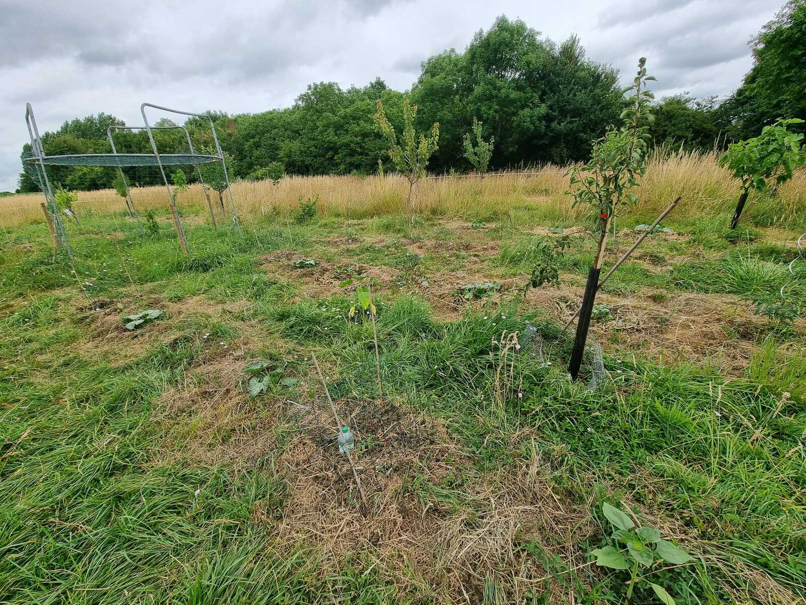Sur le terrain, la fauche n'est pratiquée qu'à proximité des jeunes arbres, le reste est laissé à l'expansion de la biodiversité.