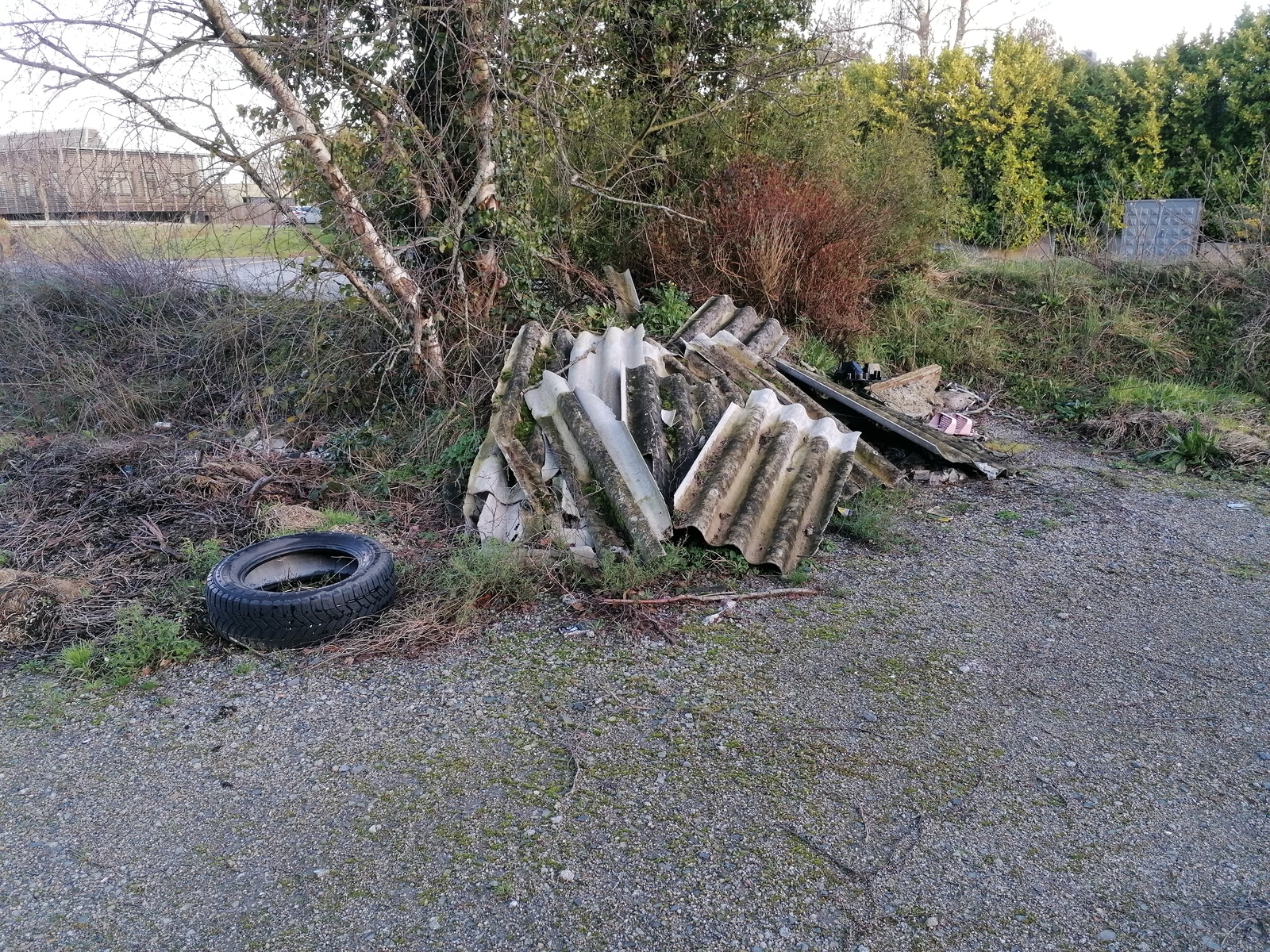 - l'autre est composé de plaques de tôle ondulée (fibrociments probablement amiantés), de pneus, et de bouteilles.