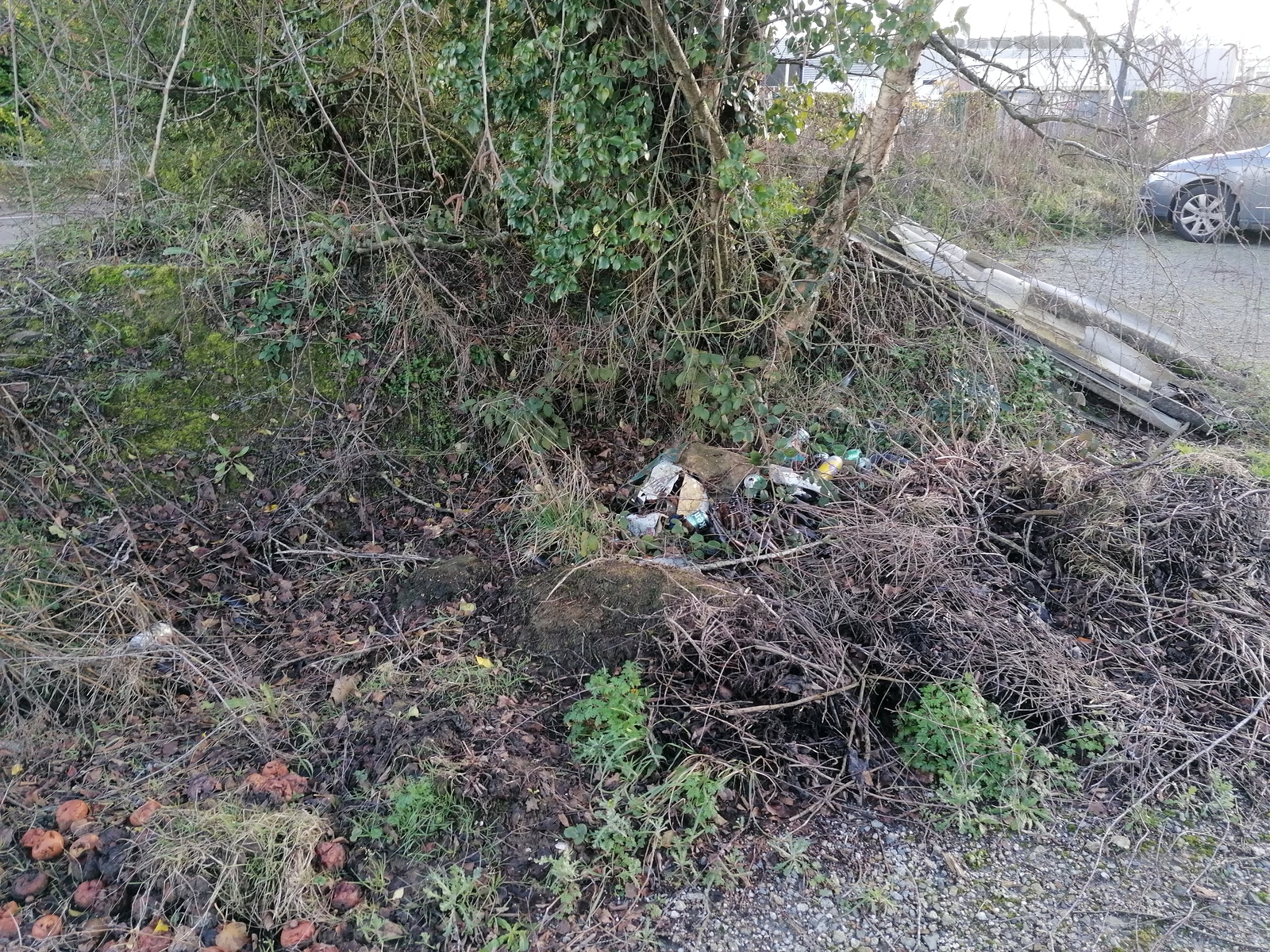 Deux dépôts de déchets sont situés sur ce parking de la rue du Sabot :