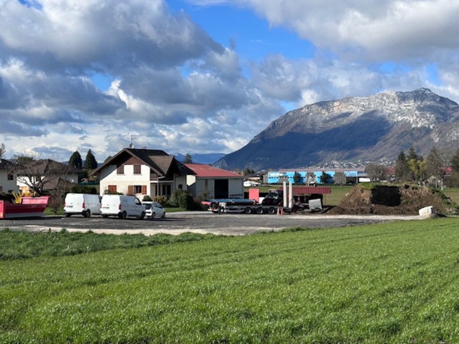 Une entreprise de travaux publics, sur la commune de Saint-Jorioz, effectue des travaux de concassage et stocke des matériaux dans une zone de PLU à usage agricole. Cette activité génère poussières, bruits, odeurs et potentiellement infiltrations dans les sols et ruissellements.