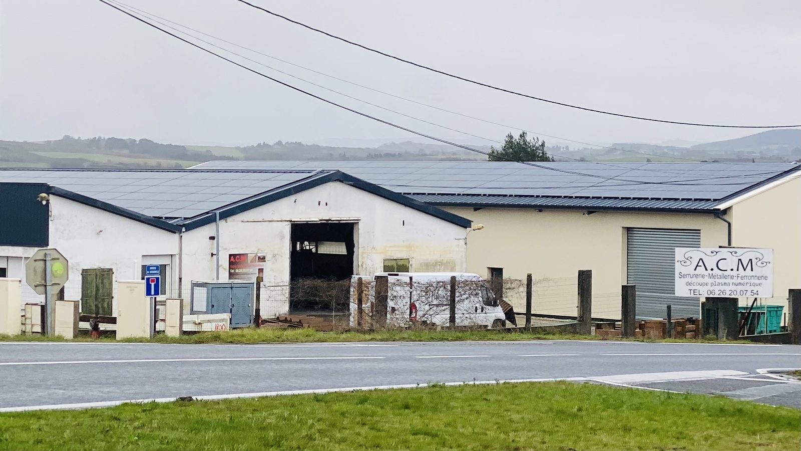 Ombrières photovoltaïques sur la toiture d'un hangar industriel