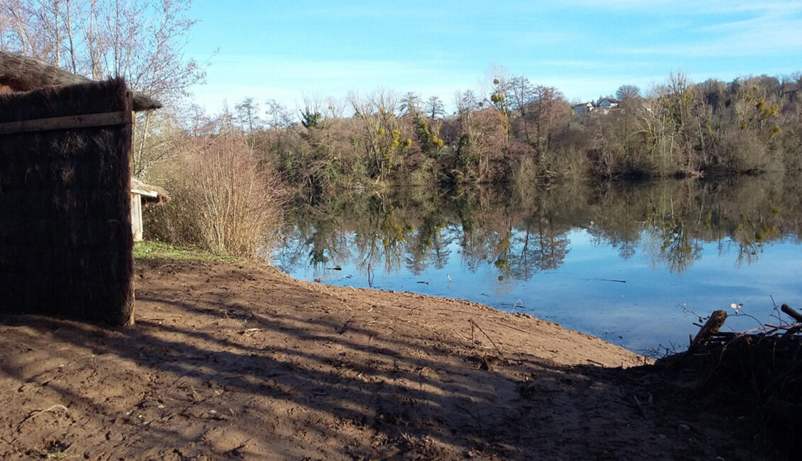 L’aménagement s’est fait uniquement avec la mobilisation de matériaux présents sur place afin de répondre à des contraintes budgétaires. L’entreprise EIVE 86 a utilisé des déblais sableux d’exploitation et des arbres. Des pieux ont d’abord été plantés verticalement à 2m de la berge afin de maintenir le radeau de troncs et de branchages disposés en bord de berge. Le bois a été recouvert par une épaisse couche de déblais sableux tassés.