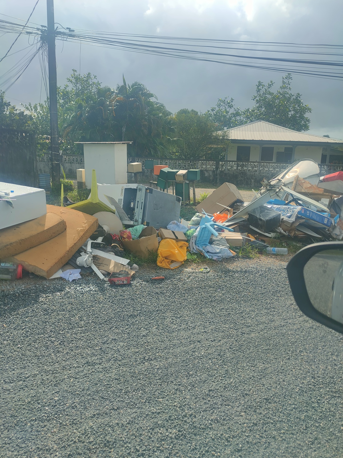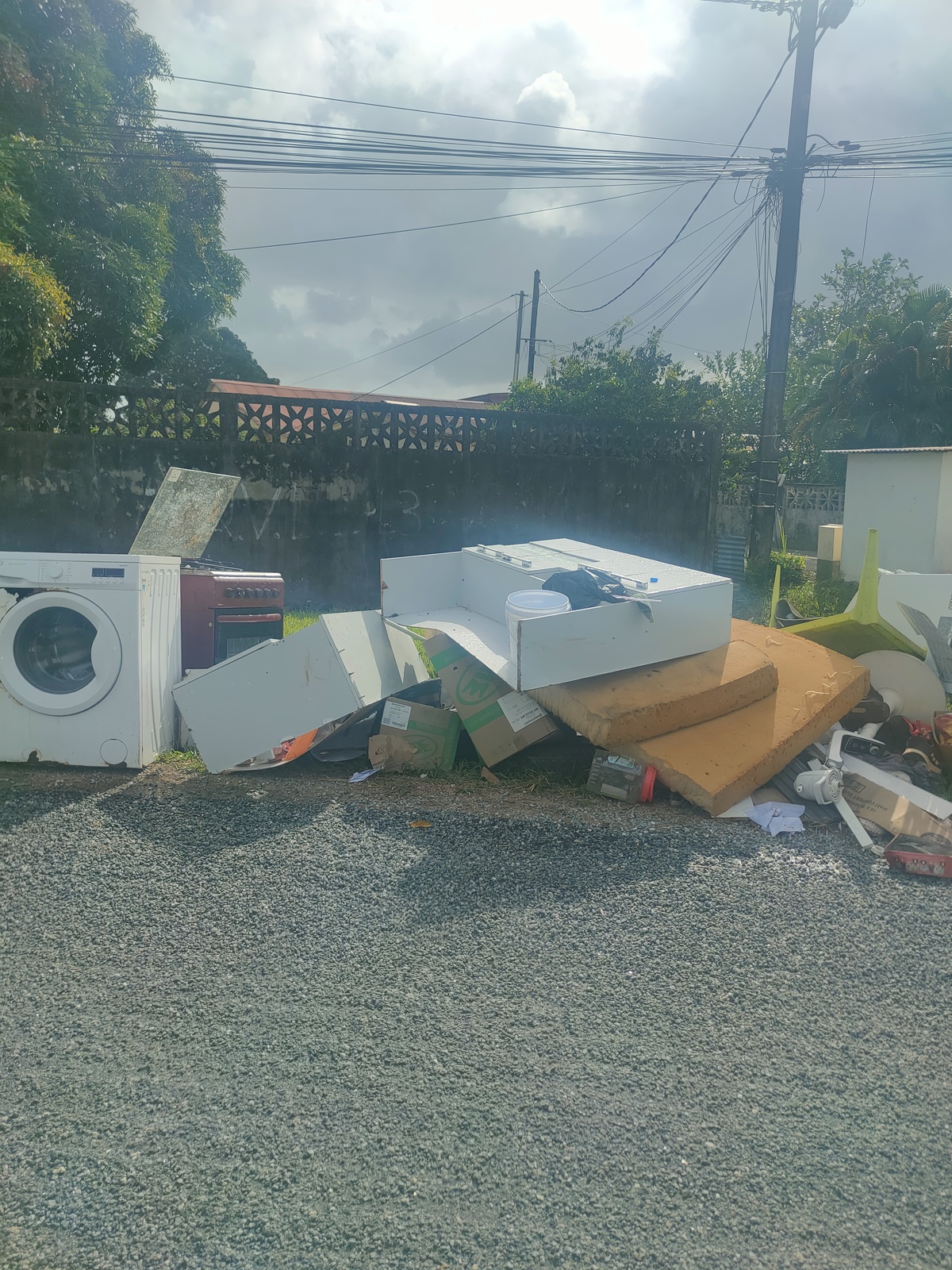 Un dépôt de déchets récurrent composé d'électroménagers (D3E), mobiliers, matelas (encombrants) et déchets ménagers a été signalé en bord de route. Il présente un danger pour les piétons car en bord de route sur un virage serré. Un retrait est effectué par le camion benne régulièrement mais les dépôts perdurent.