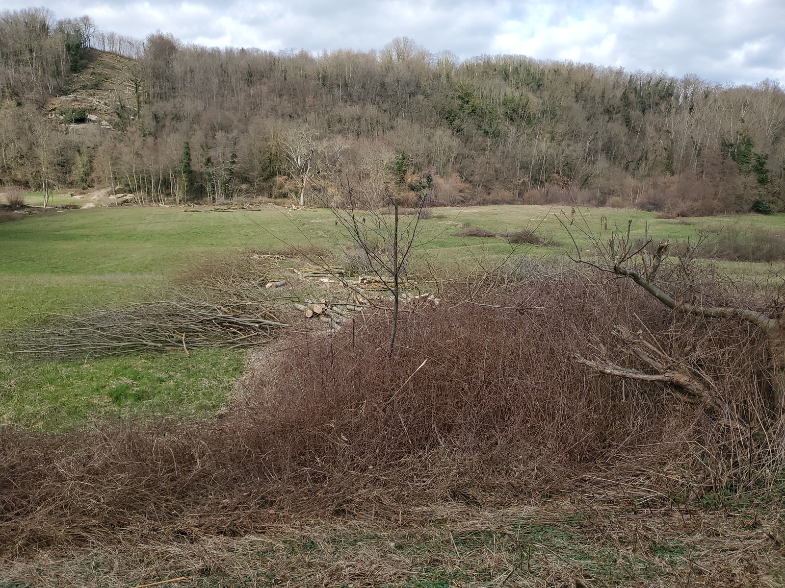 arrachage de haies sur le bord de la route et destruction des arbres au bord du cours d'eau