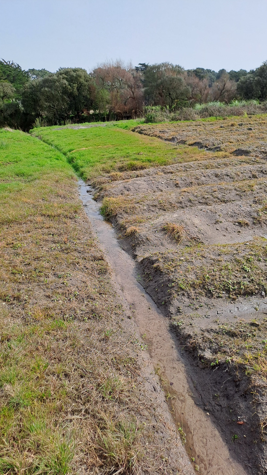 Epandage d'herbicide en zone de non traitement à moins d'1 m d'un fossé se déversant dans le canal des Prés Patouillards , lui même se déversant en mer.
