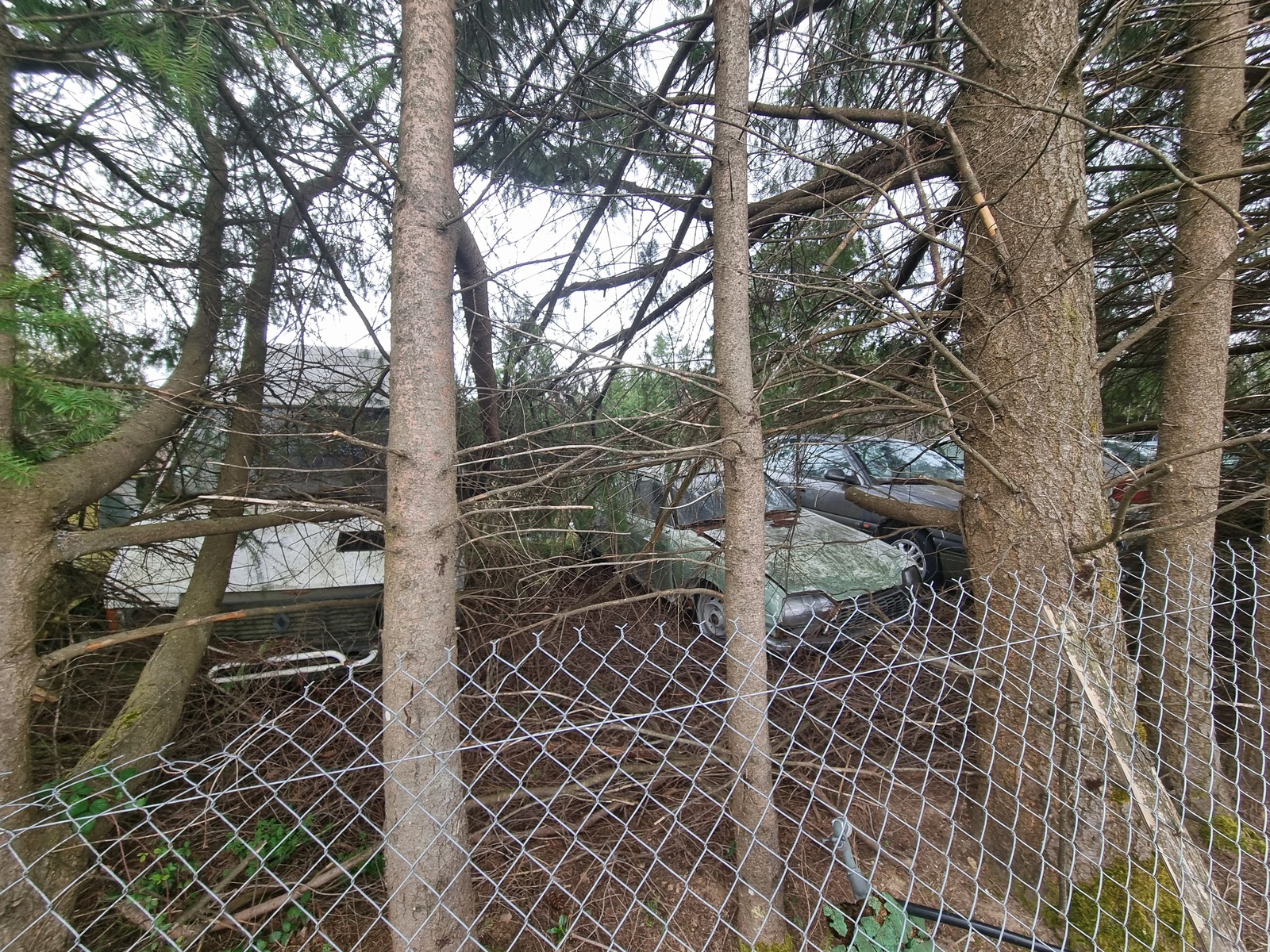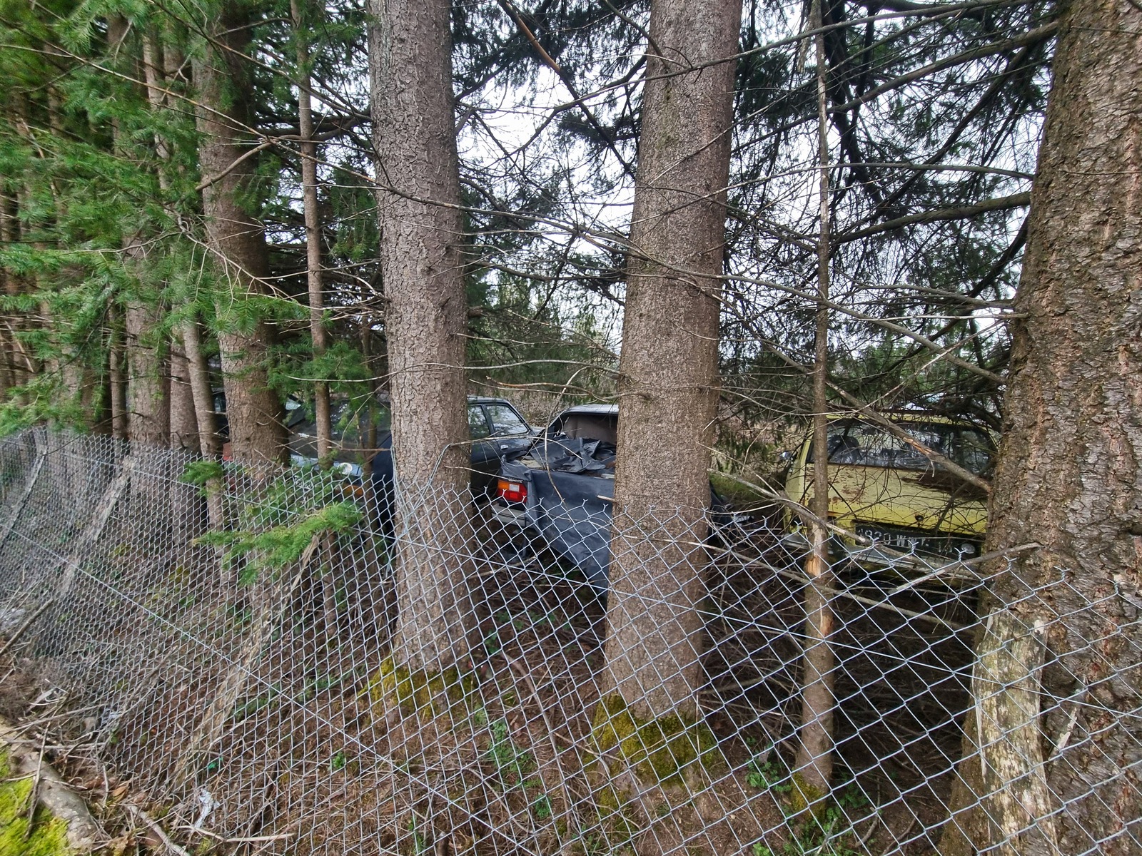 Une vingtaine de véhicule entreposé sur un terrain privé en bordure de bois