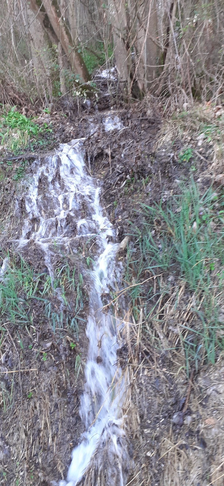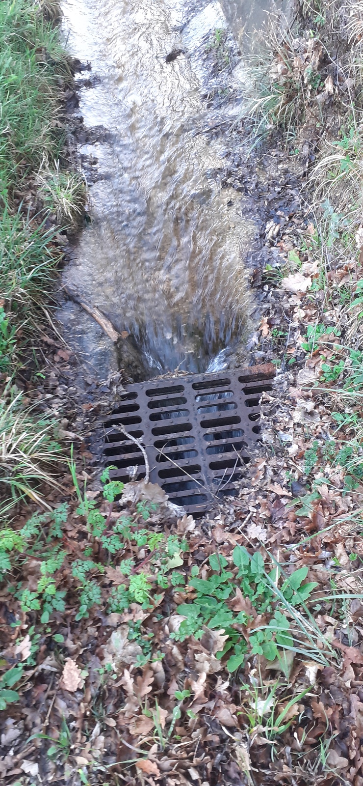 Le ruisseau des Arcelles à partiellement quité son lit et ce déverse dans une bouche d'eau pluviale