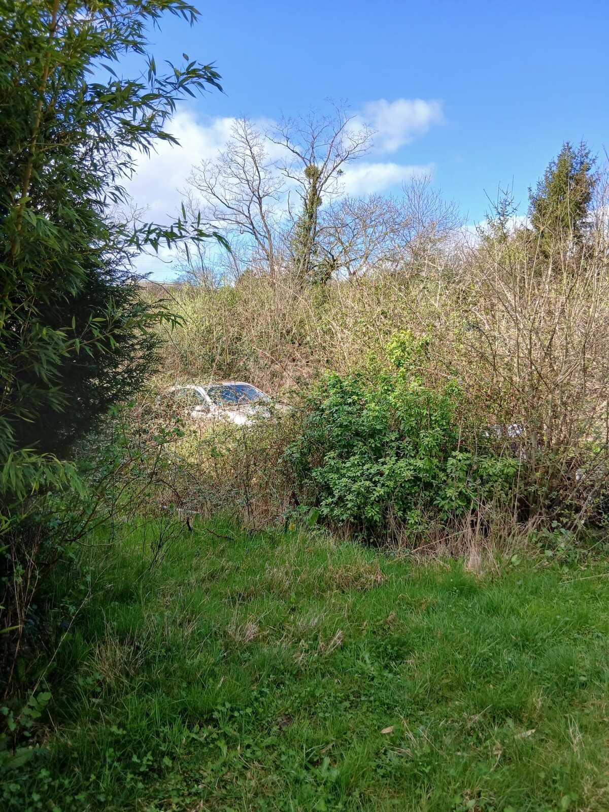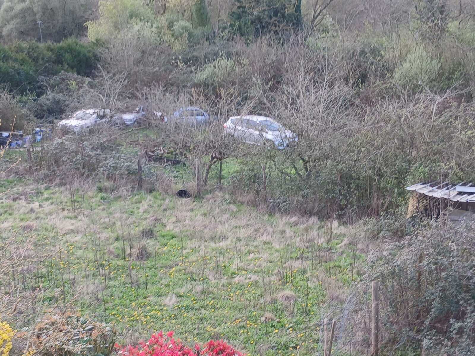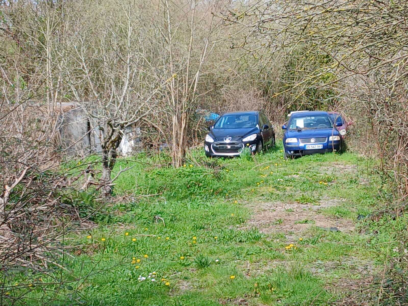 Abandon de véhicules hors d'usage en quantité importante (au moins une quinzaine) sur un terrain privé. Présents pour certains depuis 5 ou 6 ans et envahis par les ronces, les véhicules sont abîmés et induisent la présence d'animaux indésirables tels que rats et ragondins.