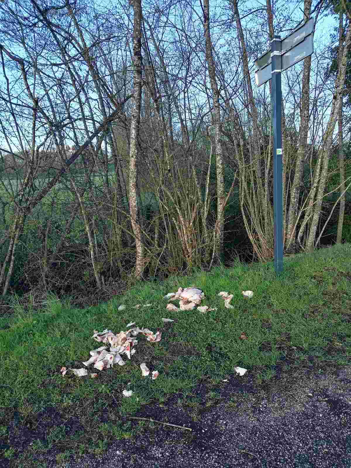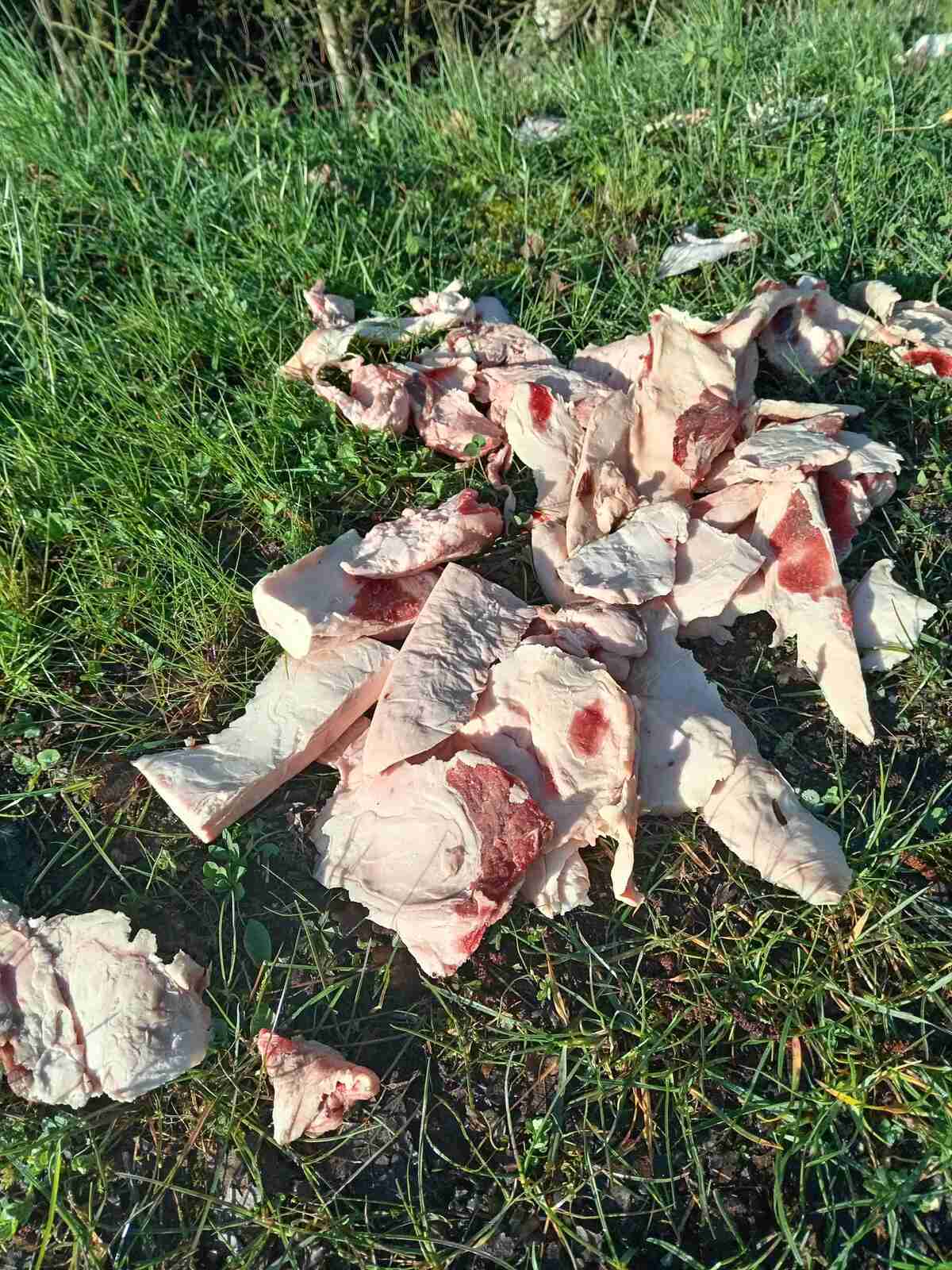 Troisième dépôts sauvage de viande crue au même endroit.(cette fois ci probablement des restes de "cuisine" de graisse de magrets de canards).